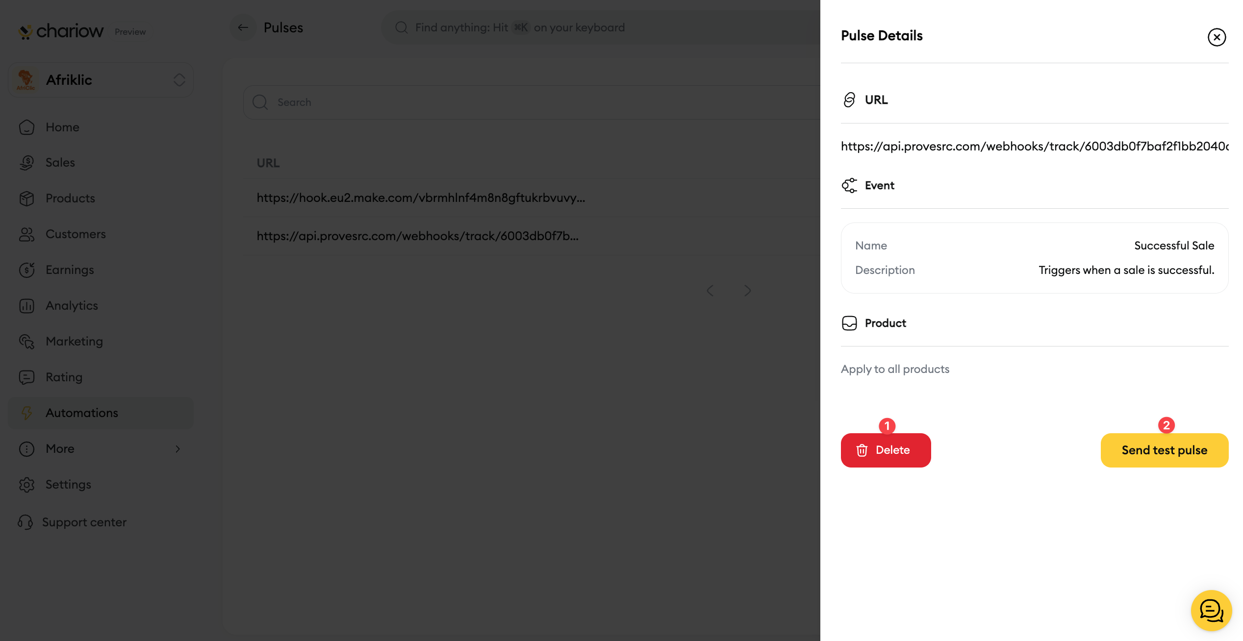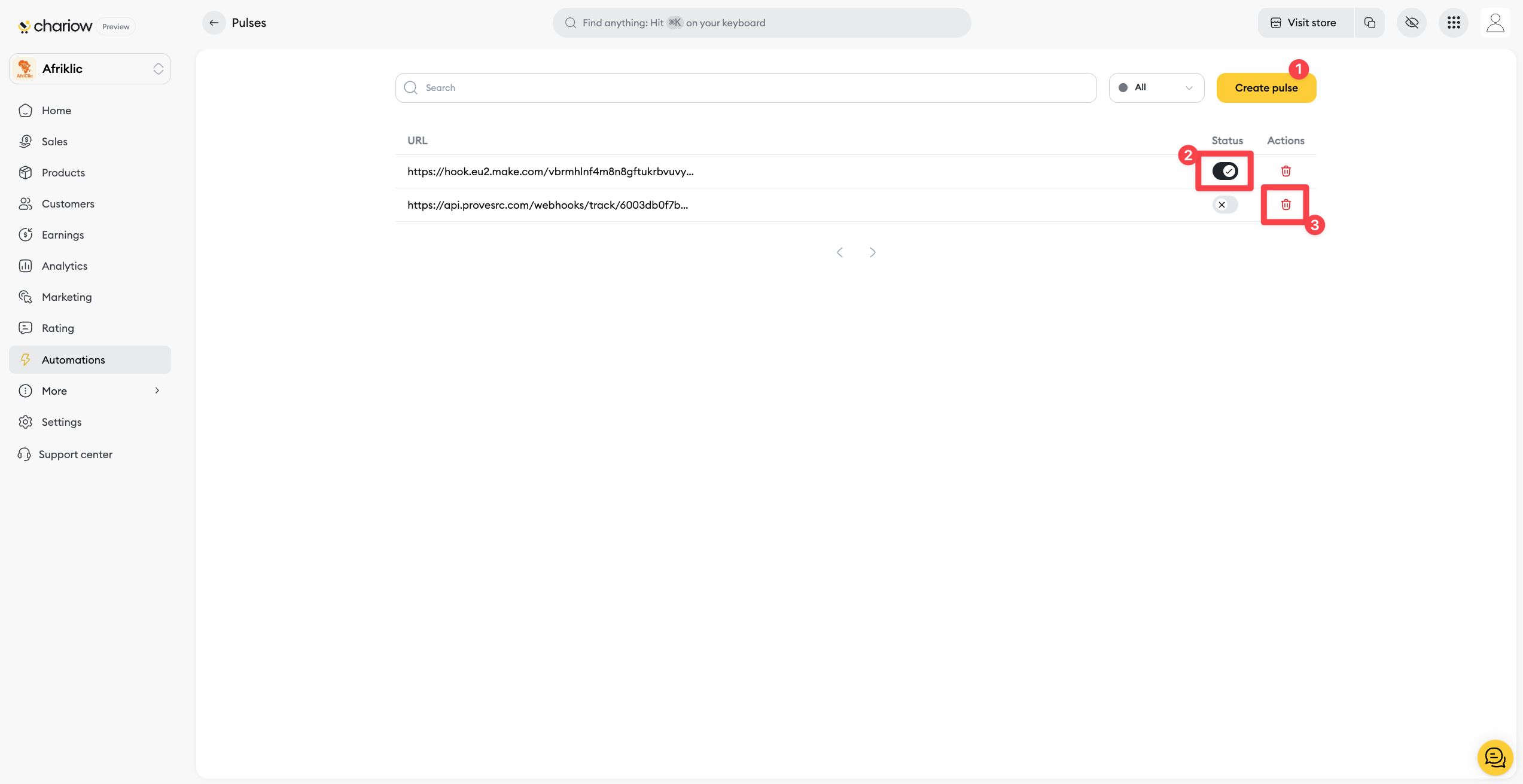 Manage and Test a pulse on Chariow | Chariow