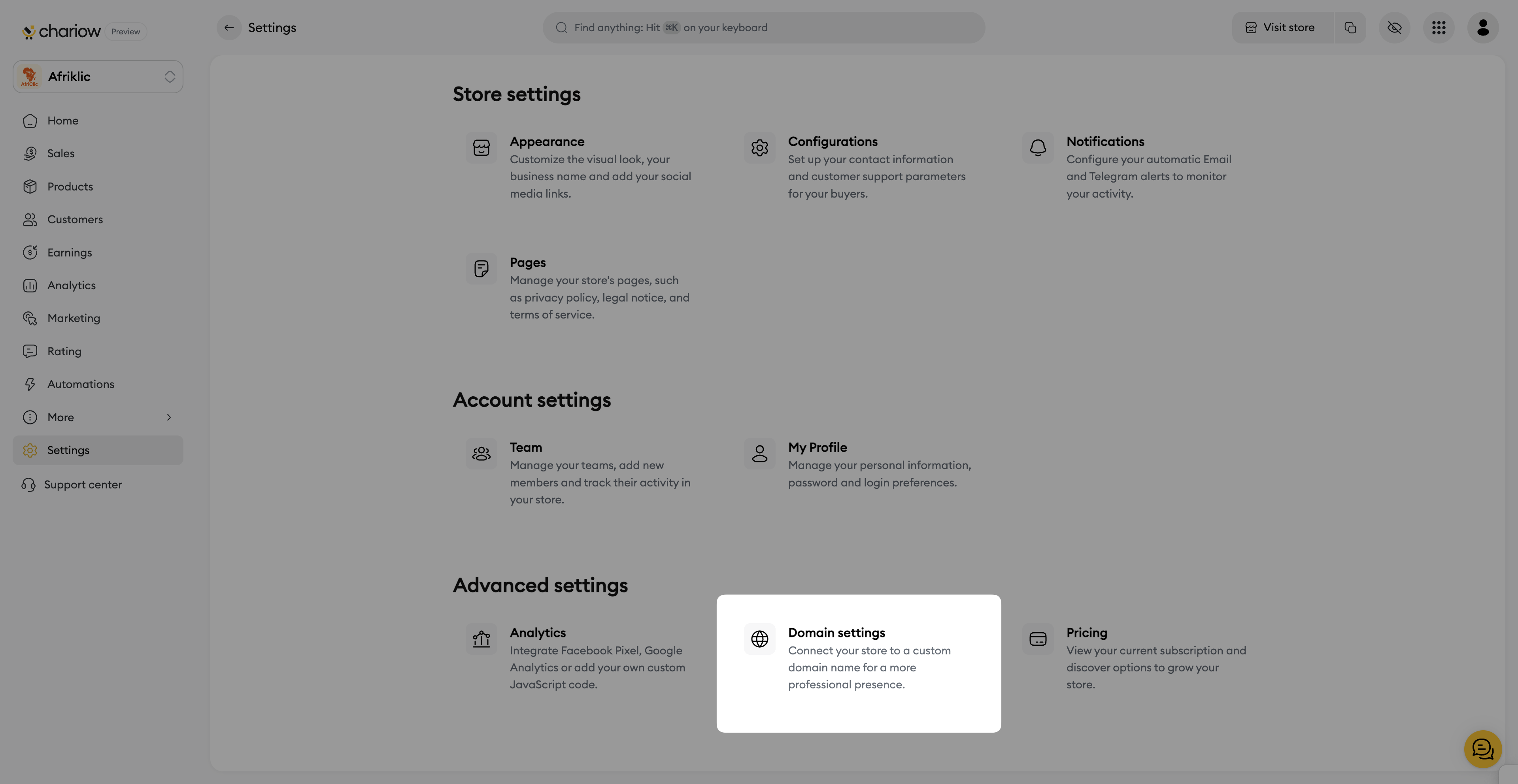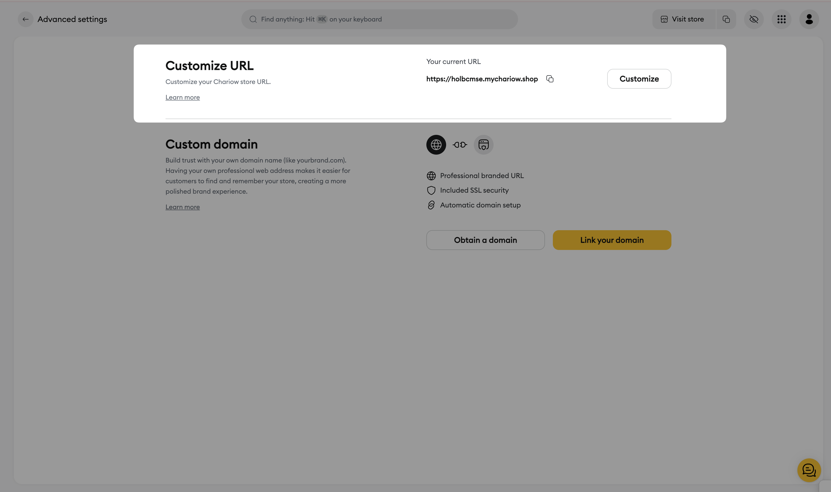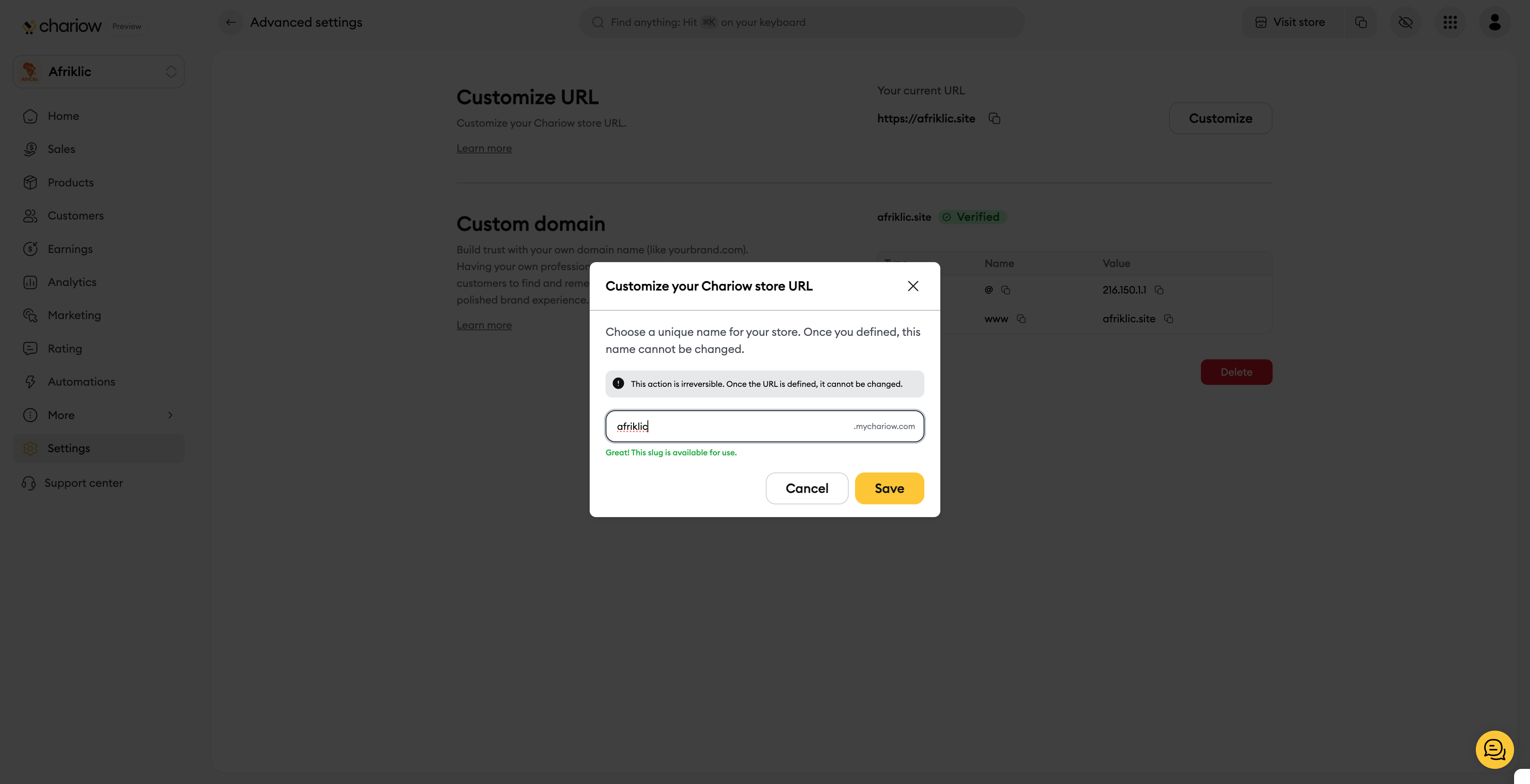 Example: Instead of https://abcdefg.mychariow.com, aim for https://afriklic.mychariow.com.