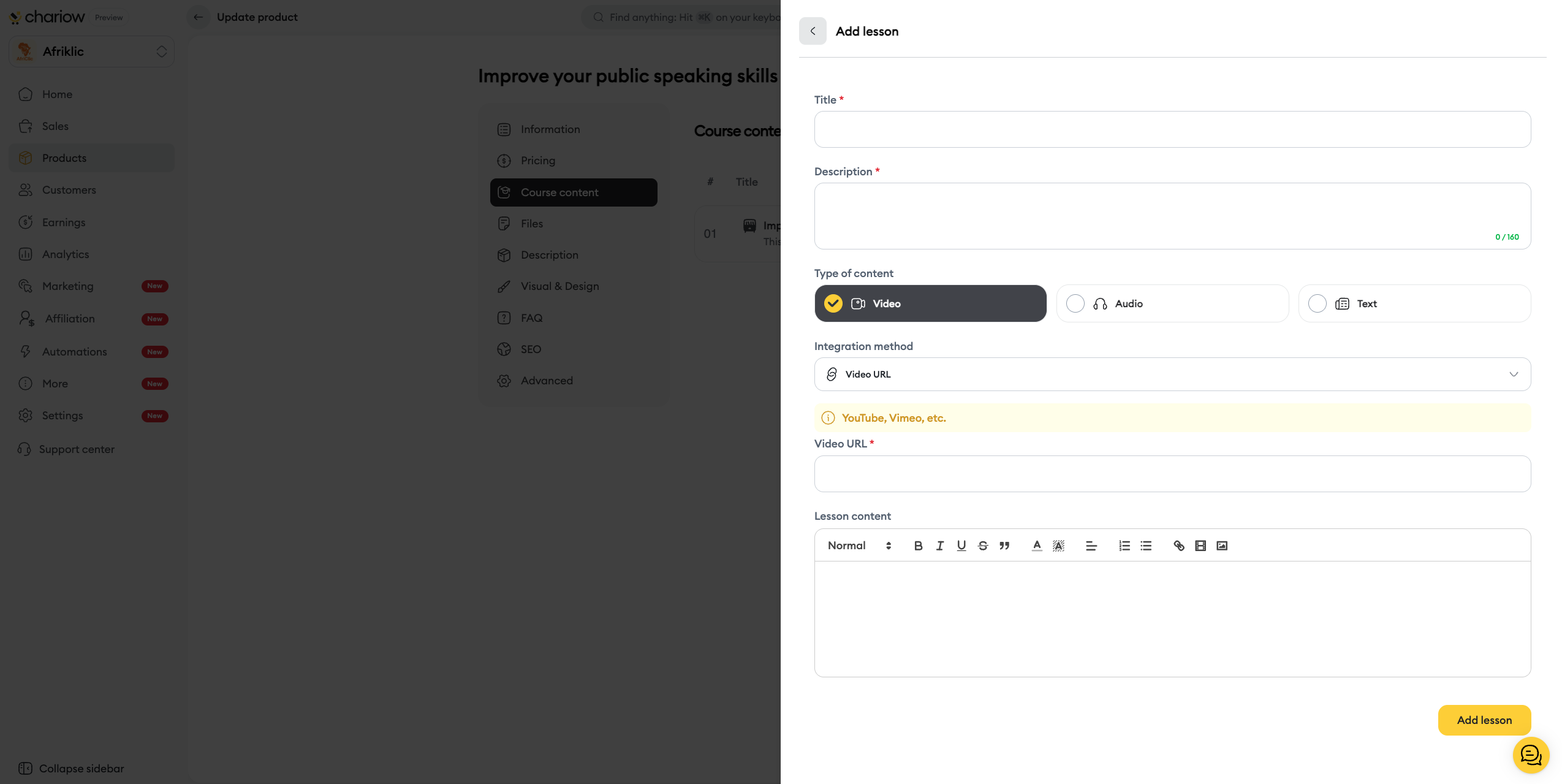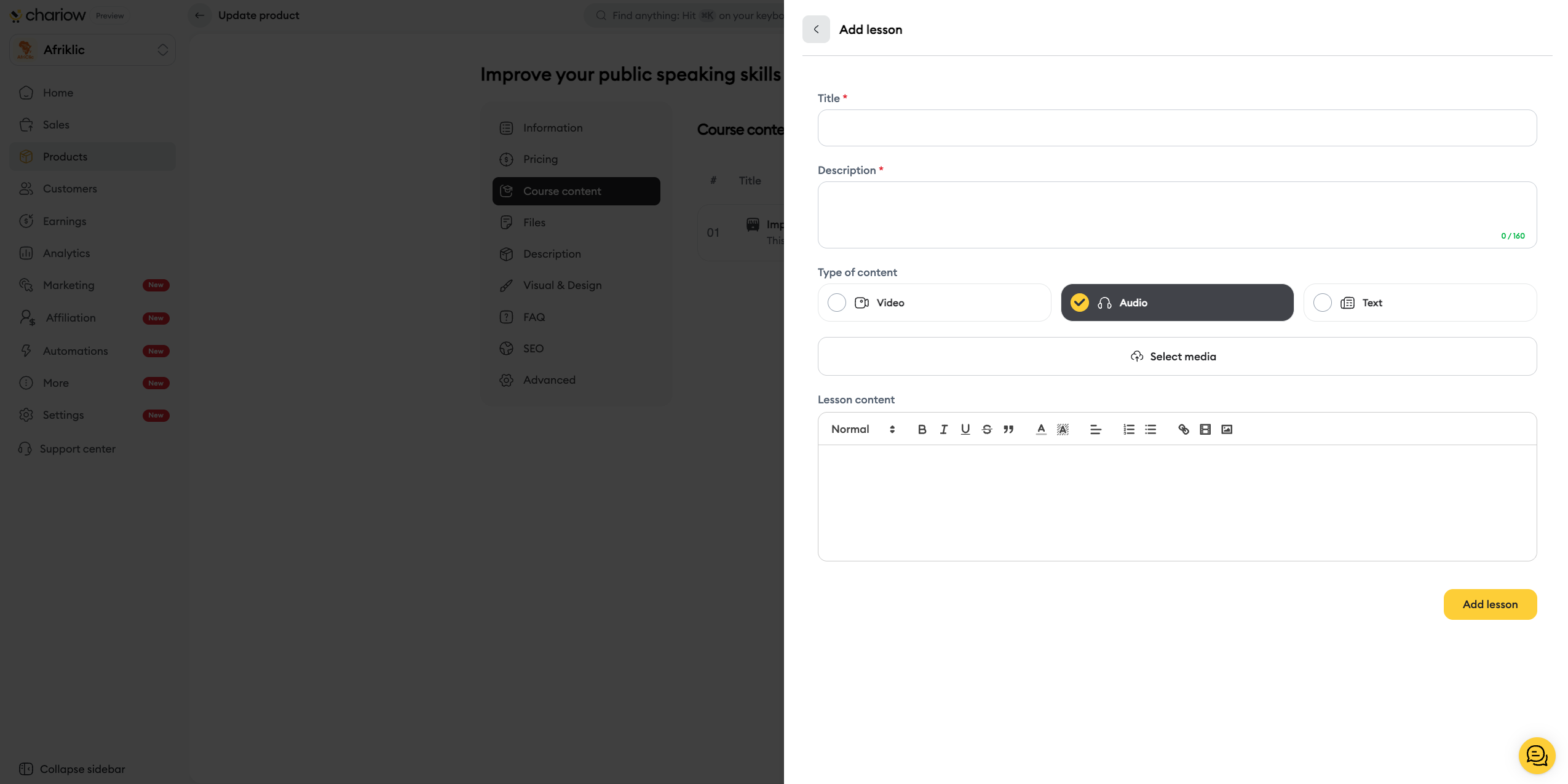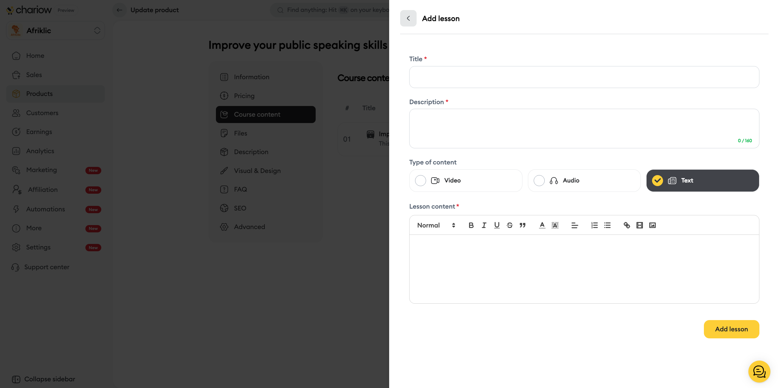 Click the yellow button Add a lesson.