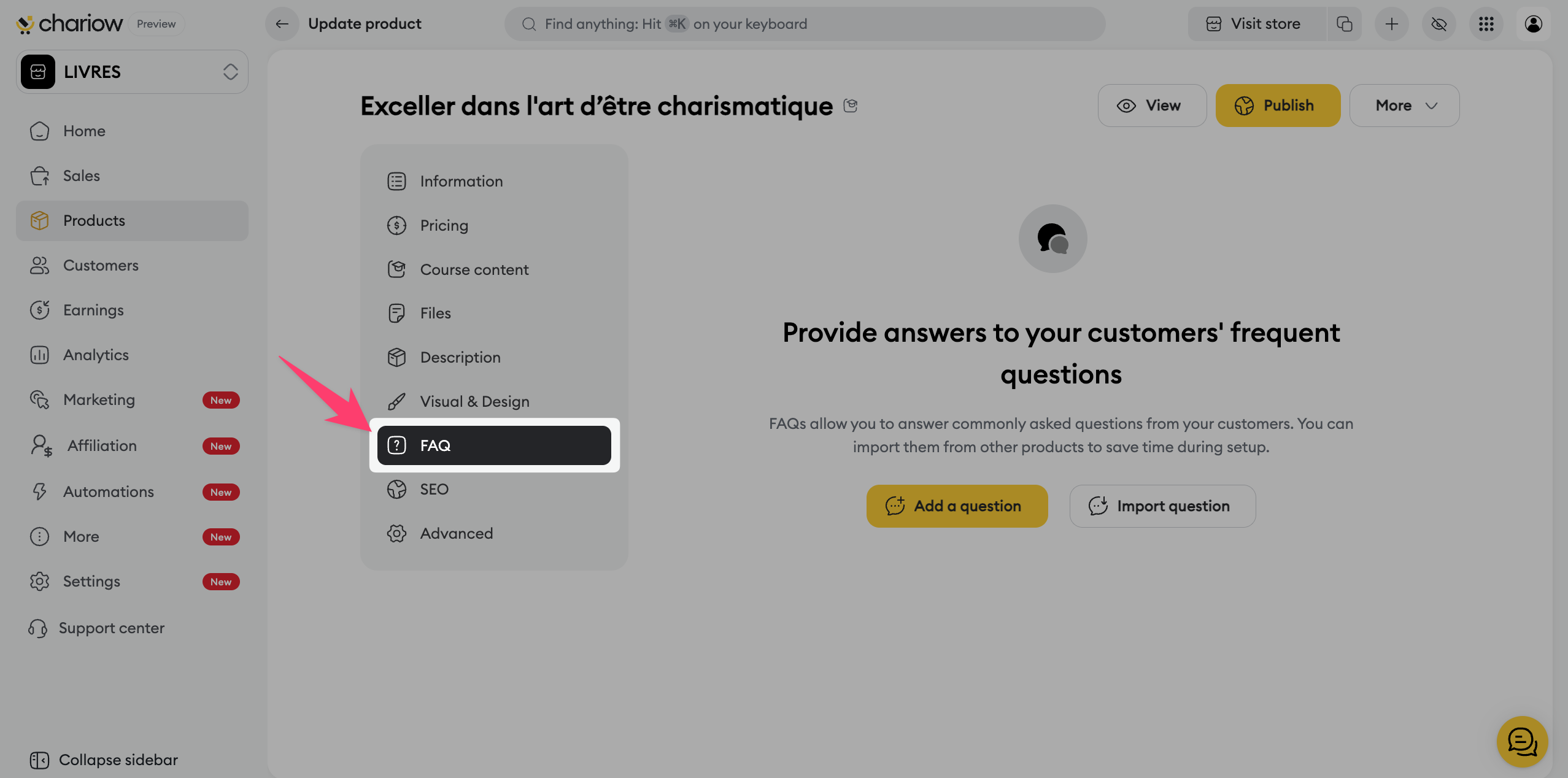 Anticipate your customers’ questions by adding an FAQ section directly on your sales page. You can create your own questions or import them from other products to save time.