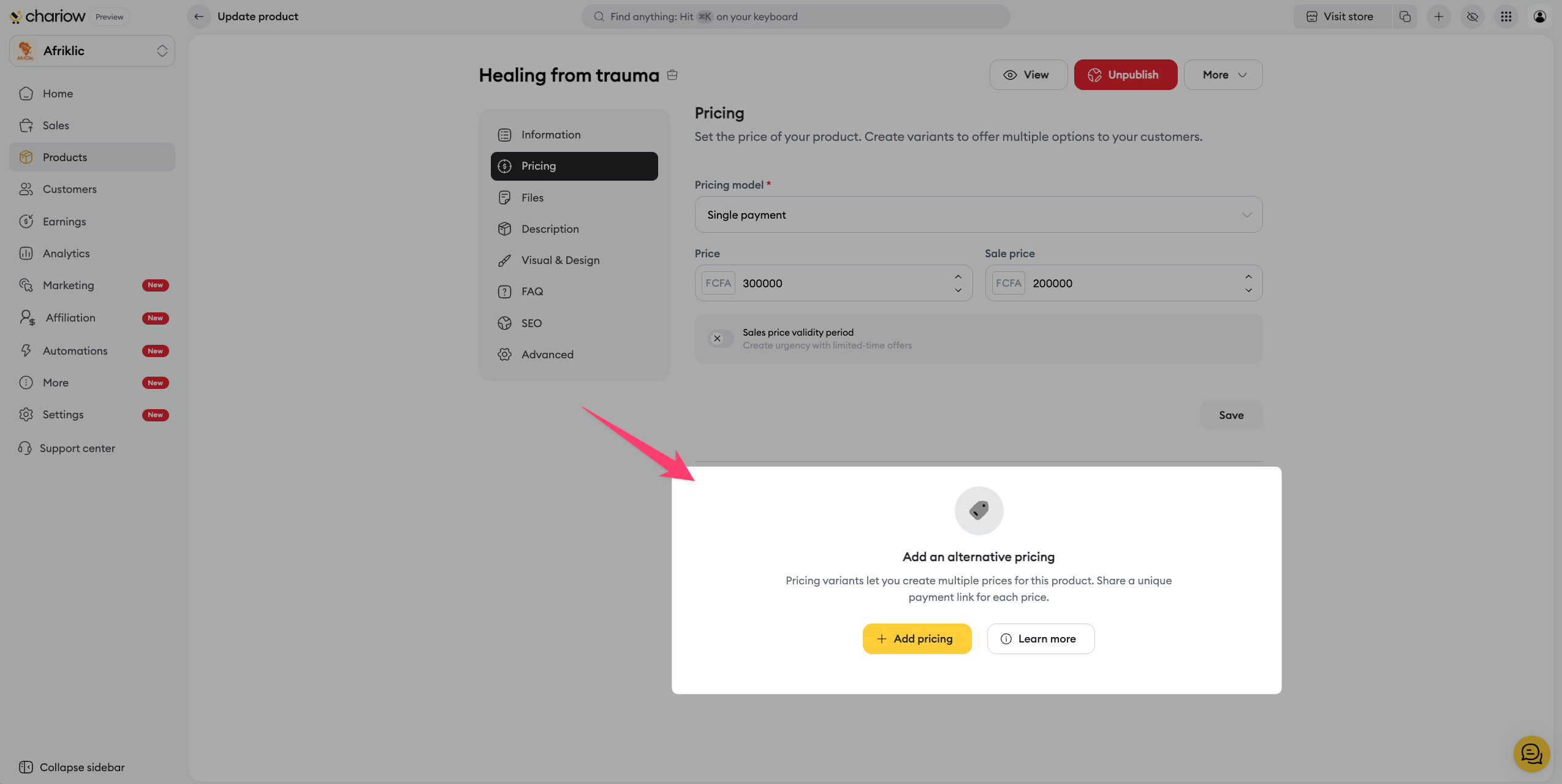 Chariow lets you offer different service levels for the same offer: