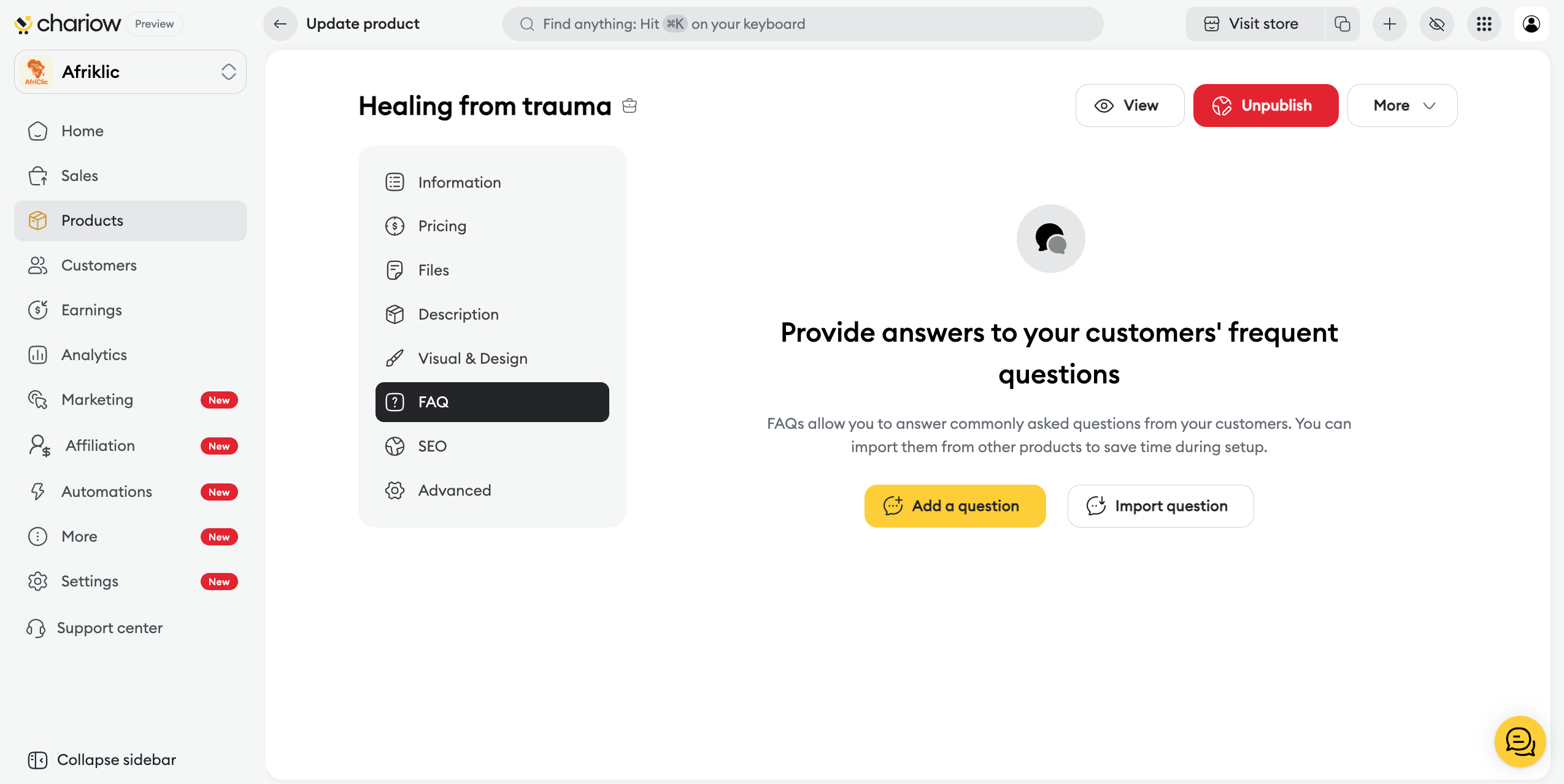 ➜ Check out the guide: Set up your product FAQ