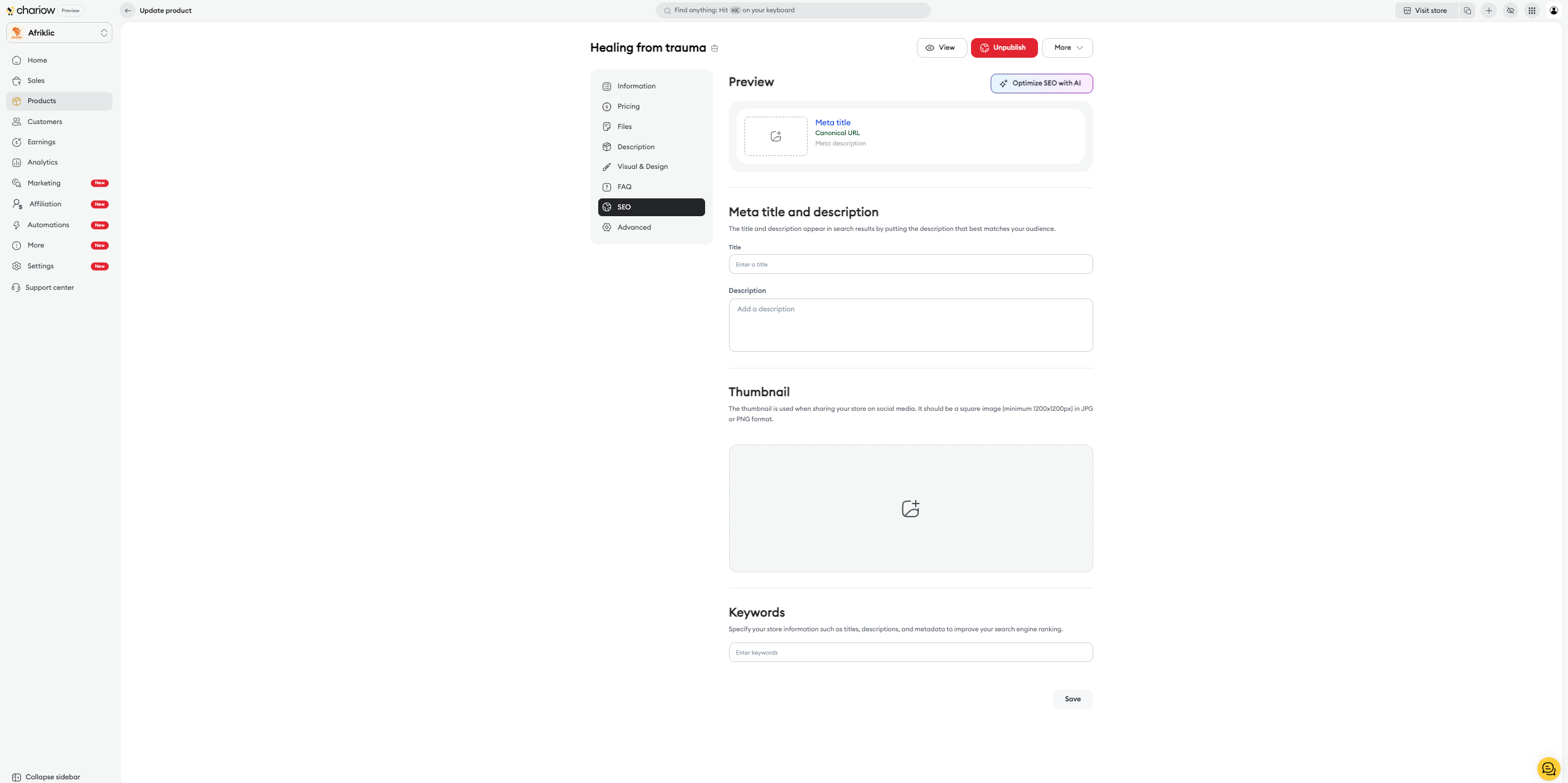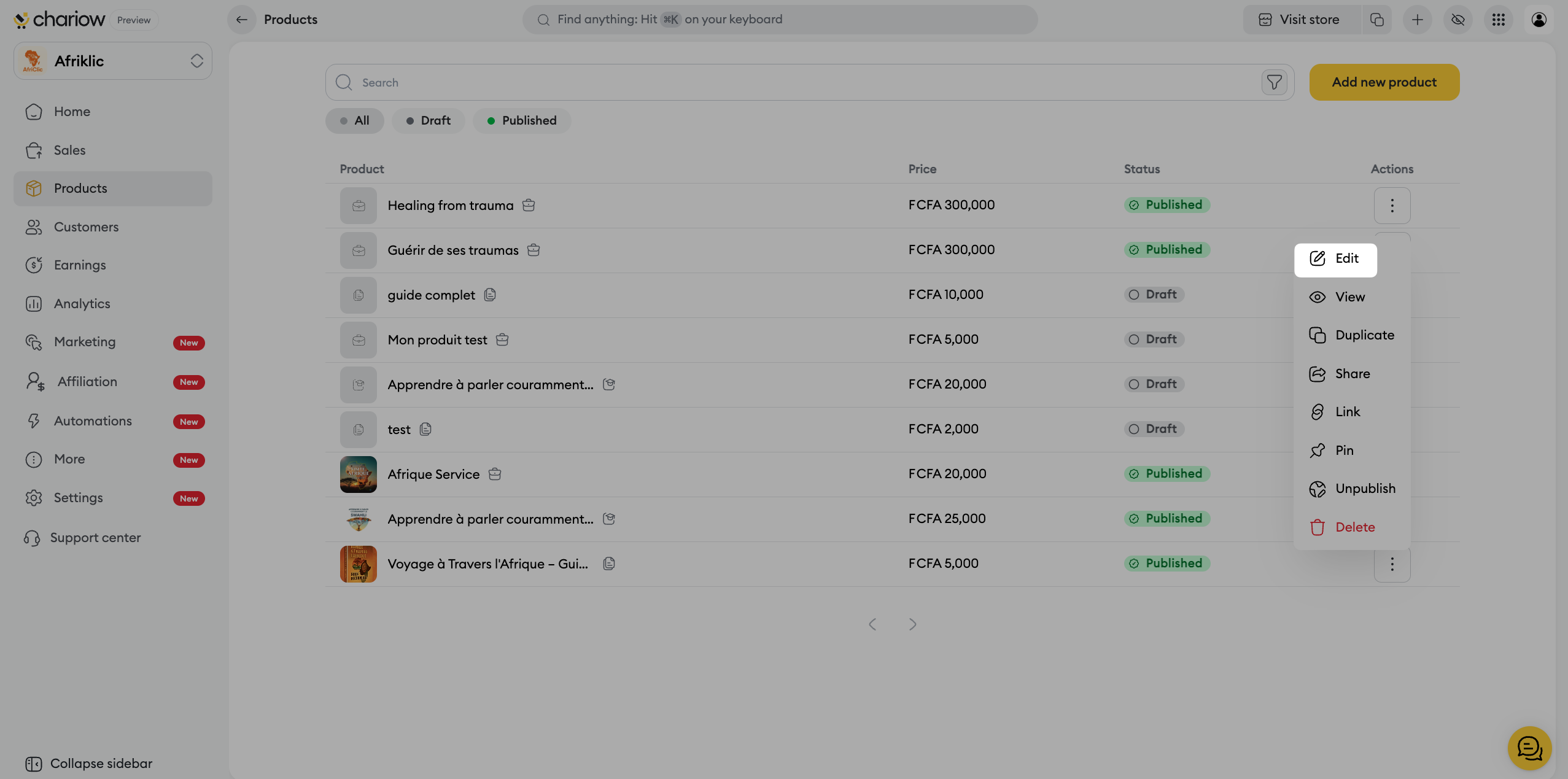 Once your product of type Service is created, Chariow lets you access a full control panel to manage your orders, secure your exchanges, and customize your commercial offer.