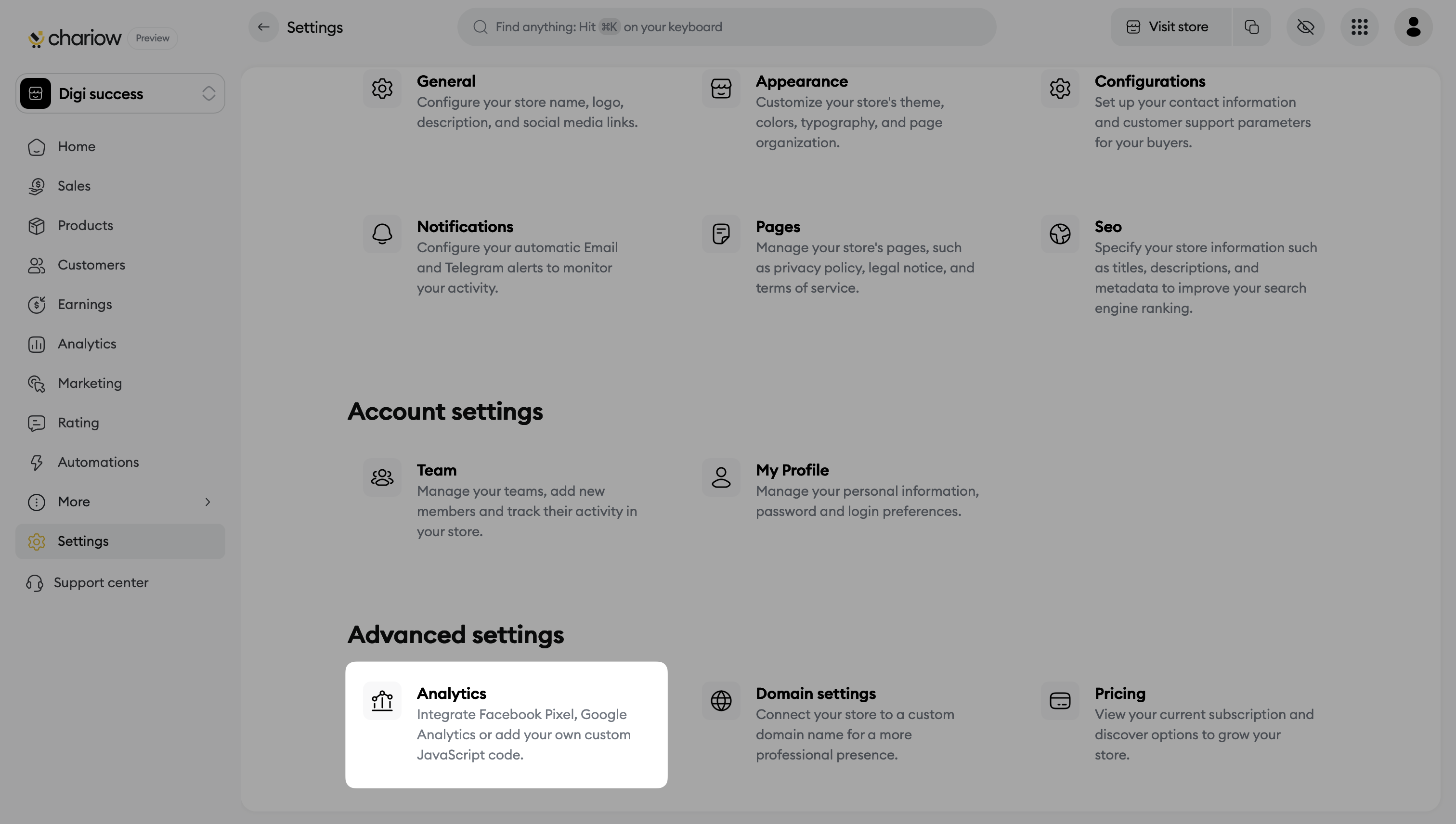 Log into your Chariow account: