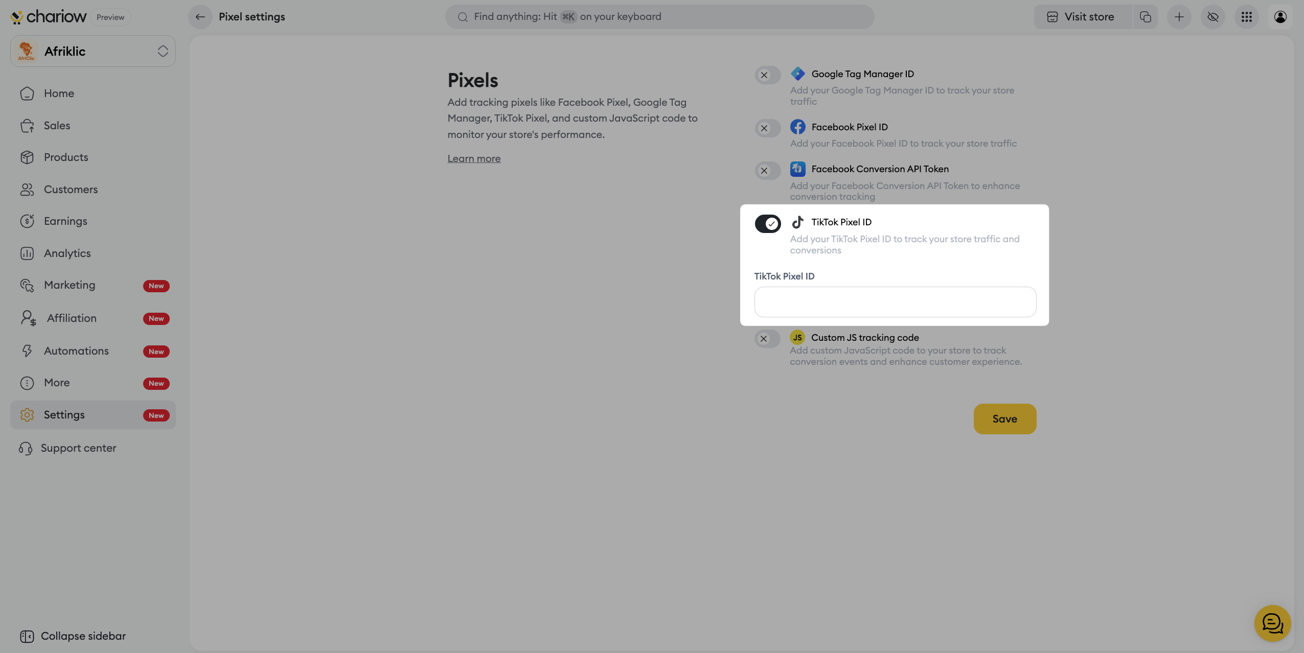 Follow these simple steps to add your TikTok Pixel to your store: