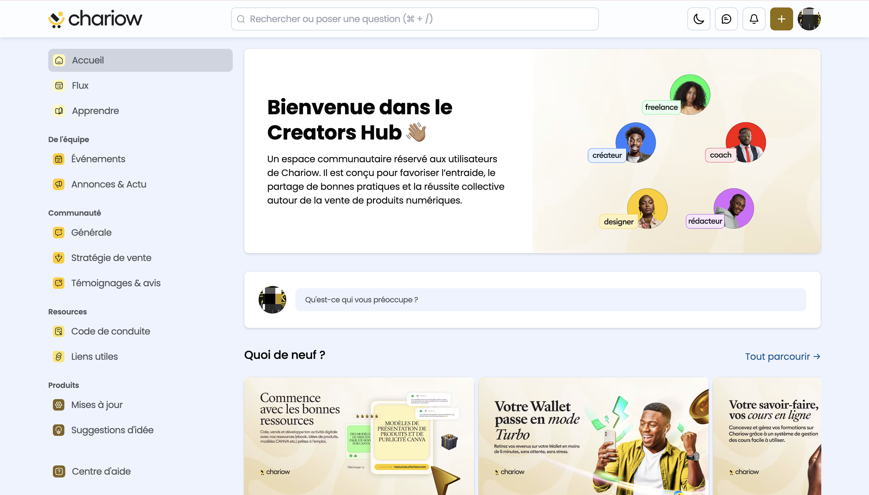 3. The Chariow Creators Hub: Your space to connect and help each other