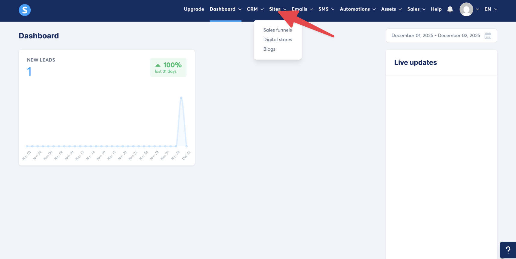 Log in to your Systeme.io account and go to the 'Funnels' tab under 'Sites'.