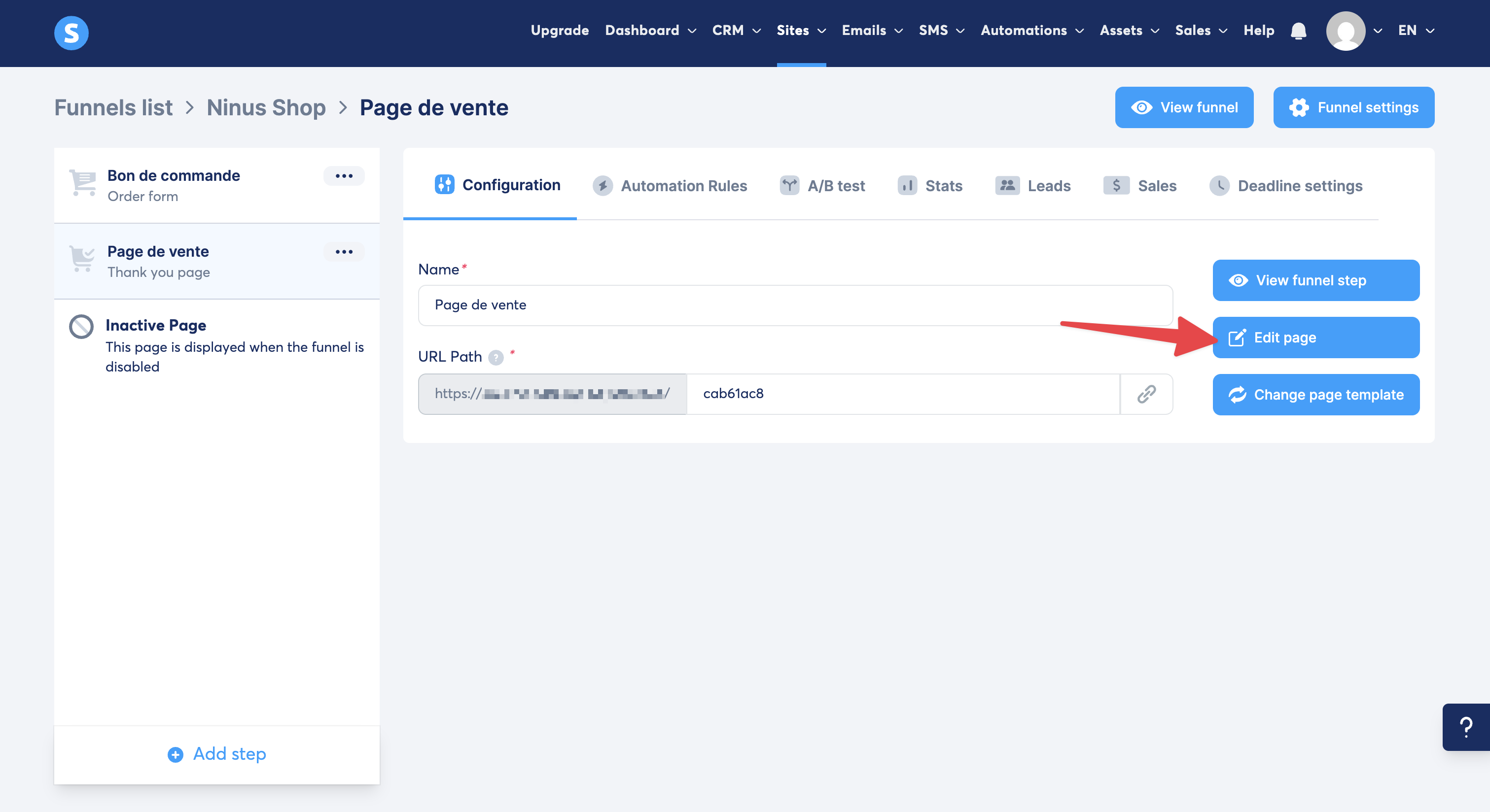 You need to have access to the page editor for your funnel or site on Systeme.io.