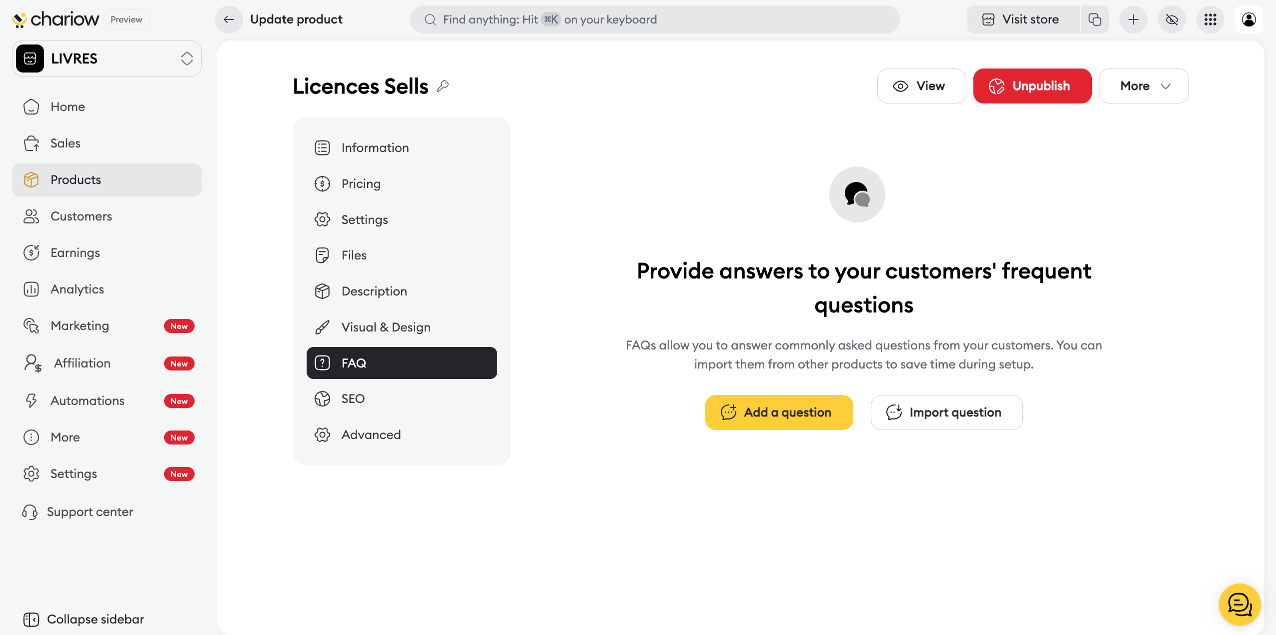 ➜ Check out the guide: Set up your product FAQ
