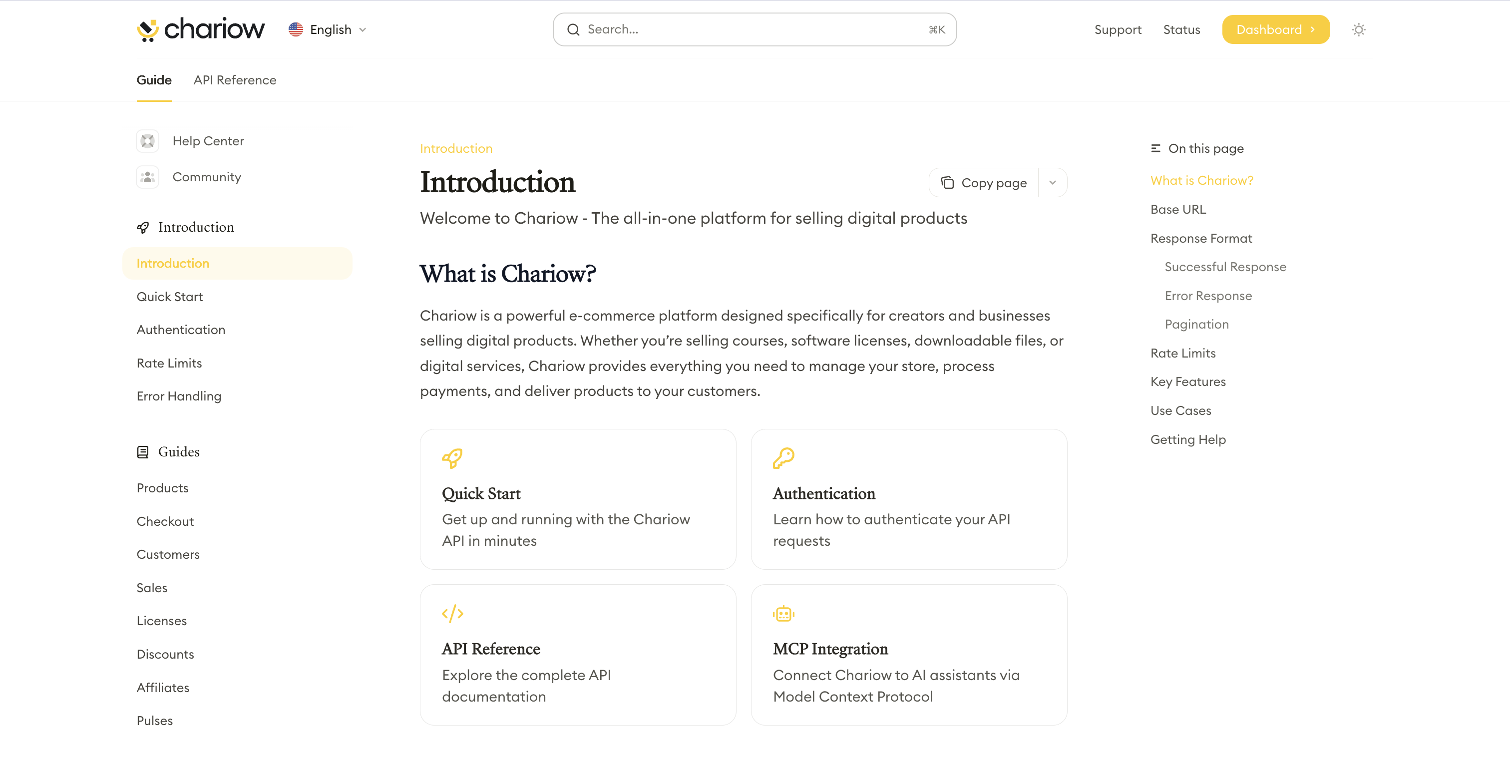 To view all of our technical guides and the API reference, go to: chariow.dev
