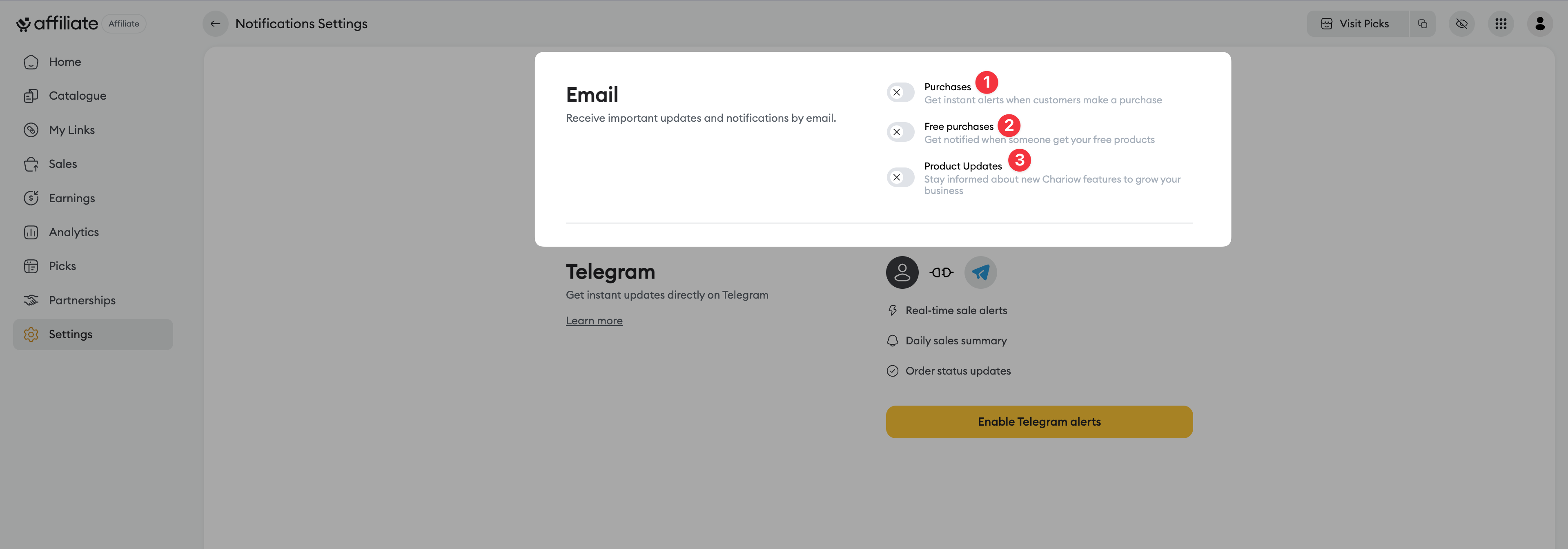 If you want to receive real-time alerts for other events (like real-time sales alerts or daily summaries), you can also set up Telegram notifications on this same page. Check out this article to do it: link