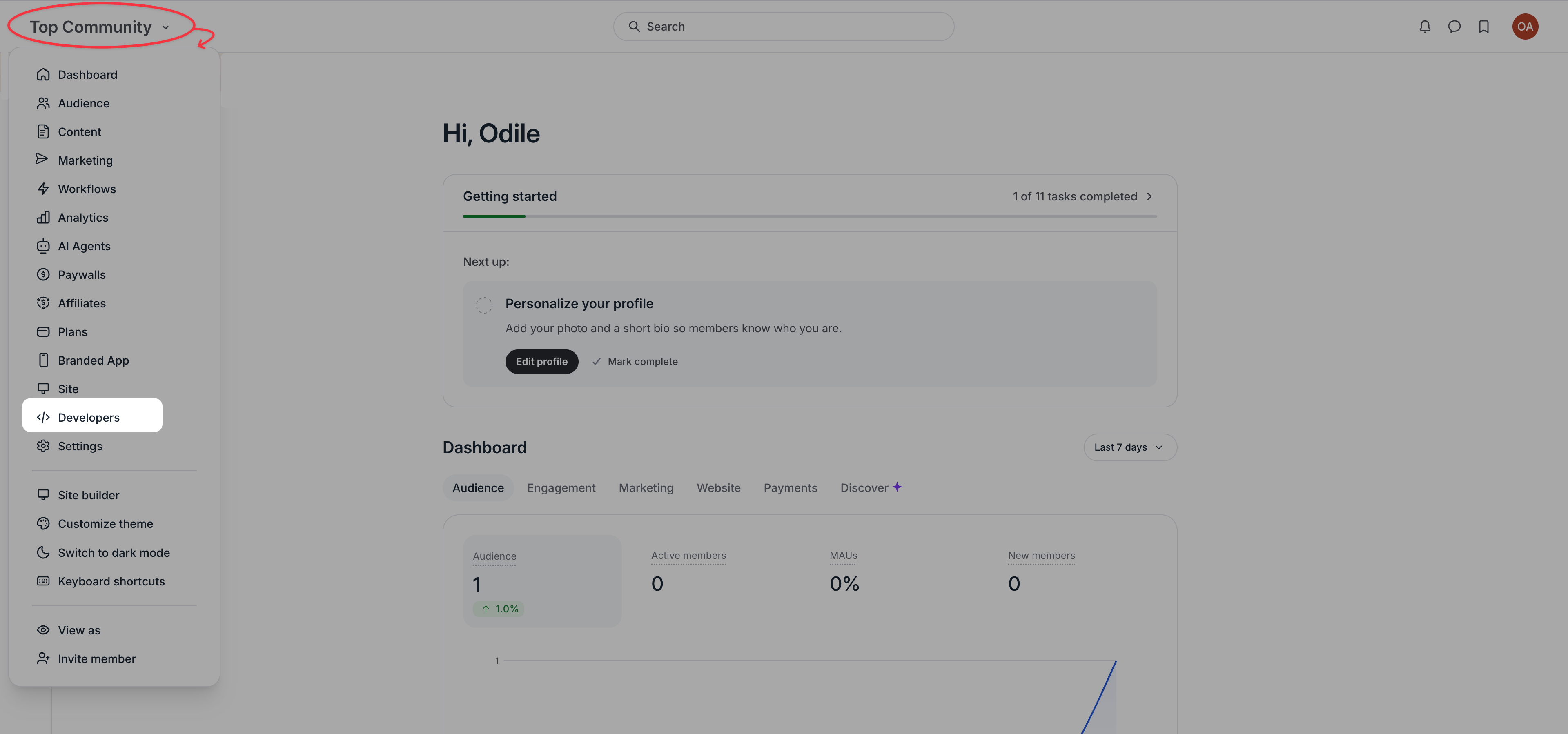 Click on your community name (top left).