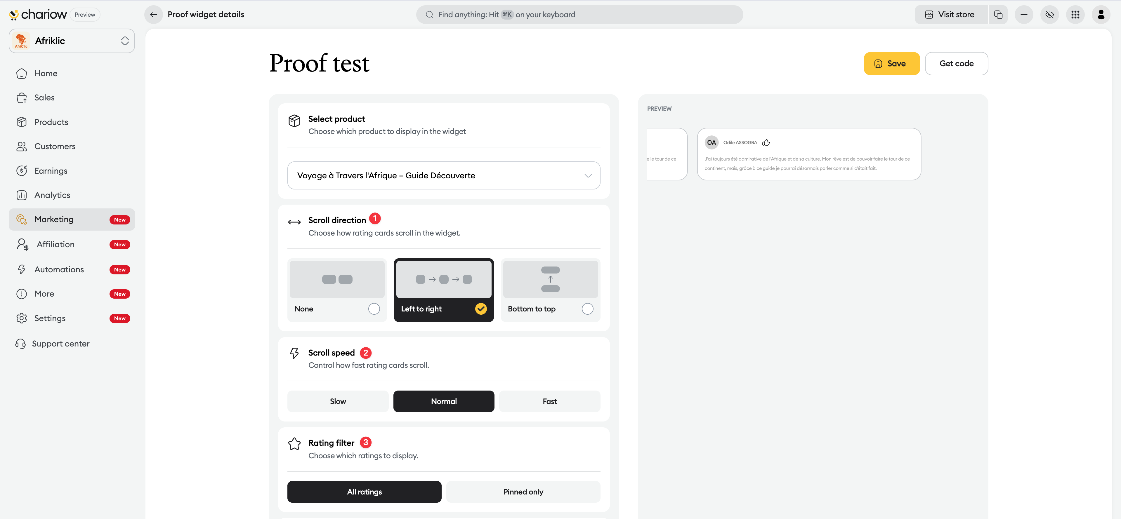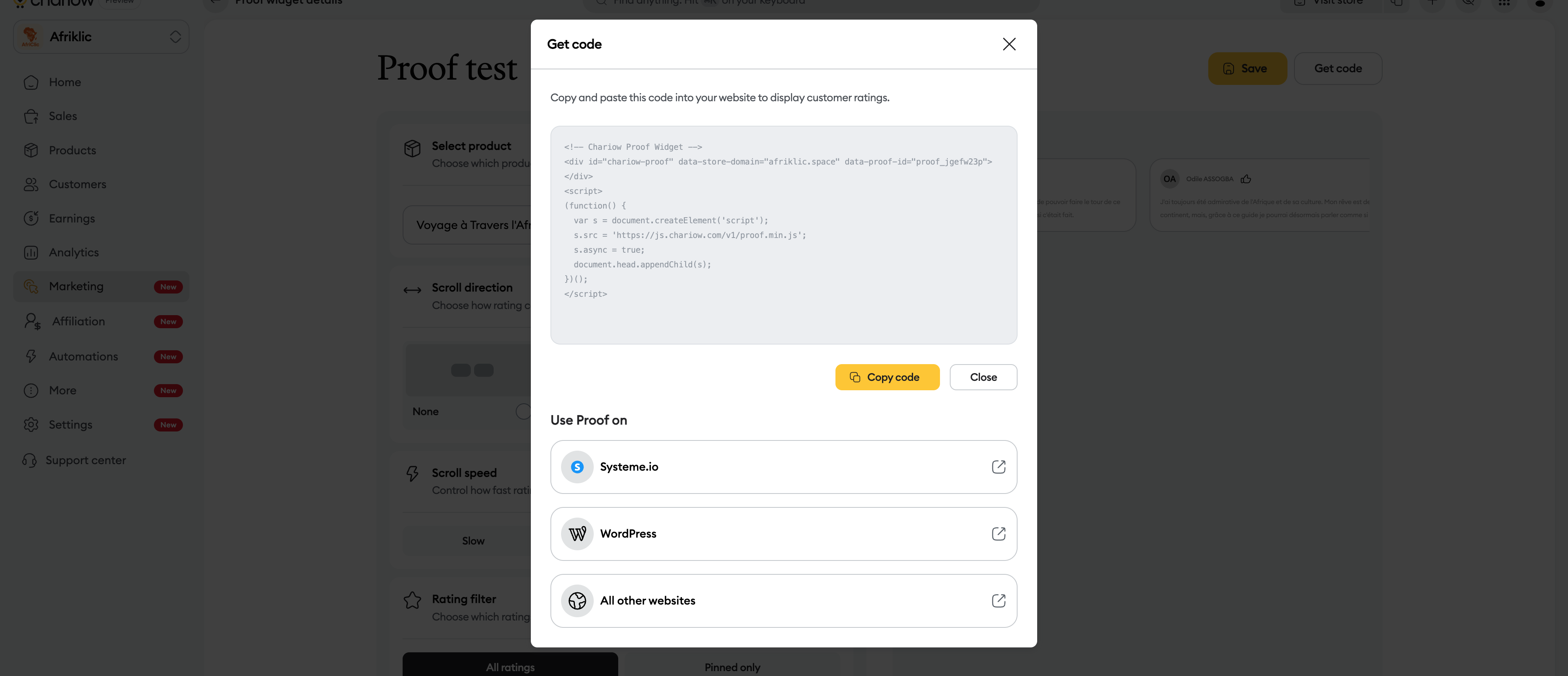 Proof is a powerful social proof tool that lets you embed your customers' reviews directly on your site to build trust and increase your conversions. By displaying real testimonials at the right time, you reassure your visitors and encourage them to take action.