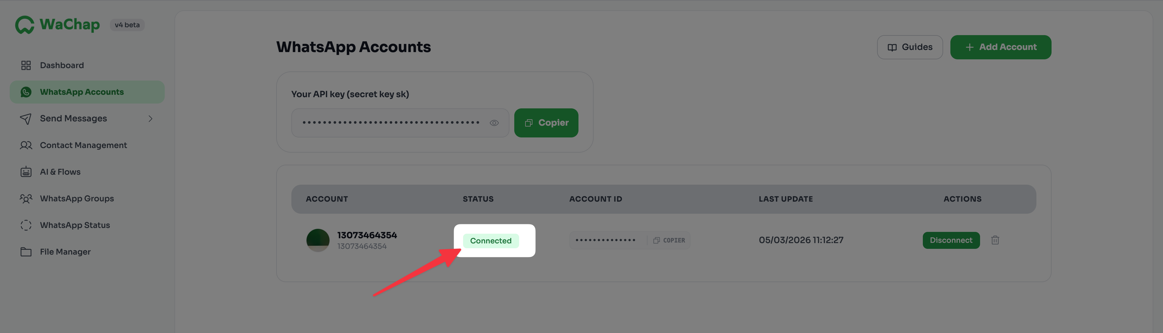 Before setting up Chariow, your WhatsApp account must be active on WaChap.