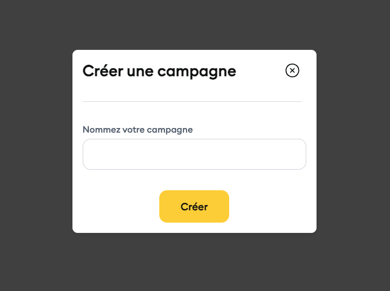 Créez une nouvelle campagne : Cliquez sur le bouton Créer une campagne (1) et une fenêtre s’ouvrira.