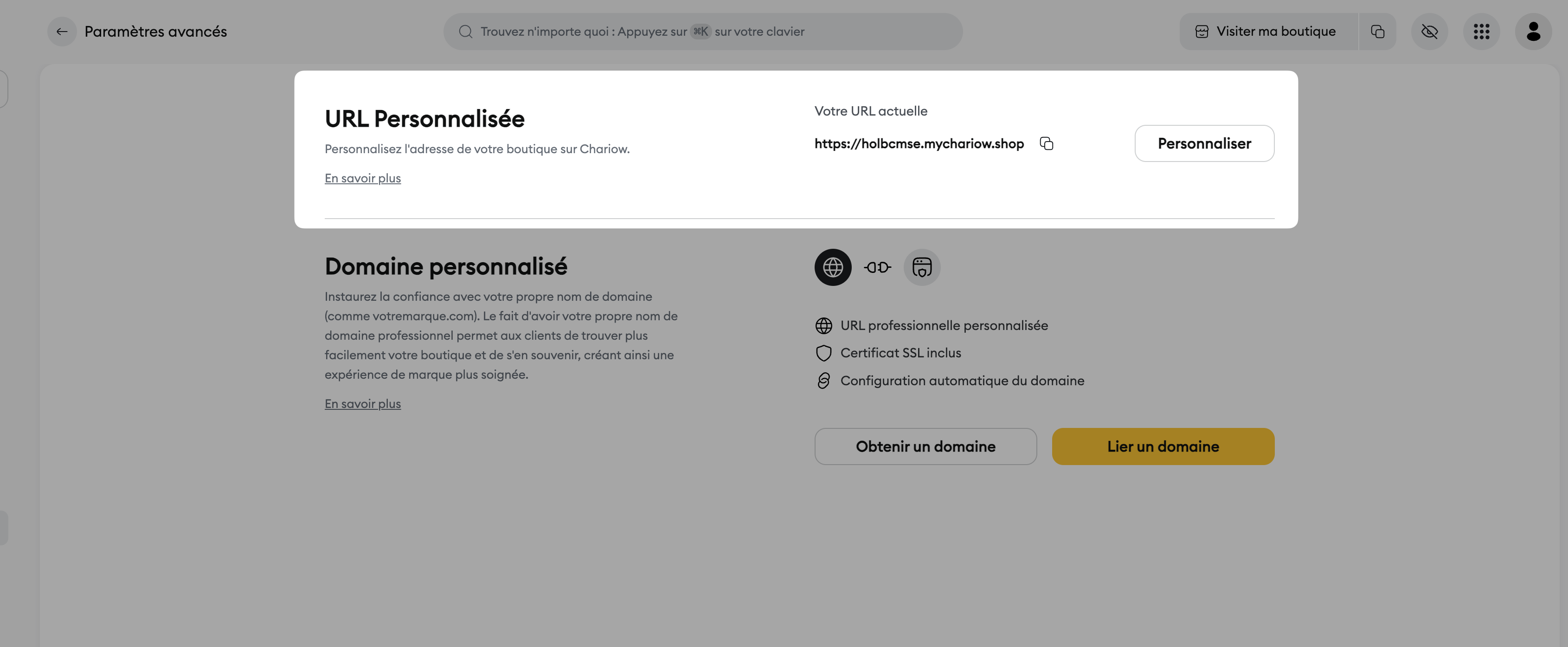 Repérez la section URL Personnalisée et cliquez sur Personnaliser.