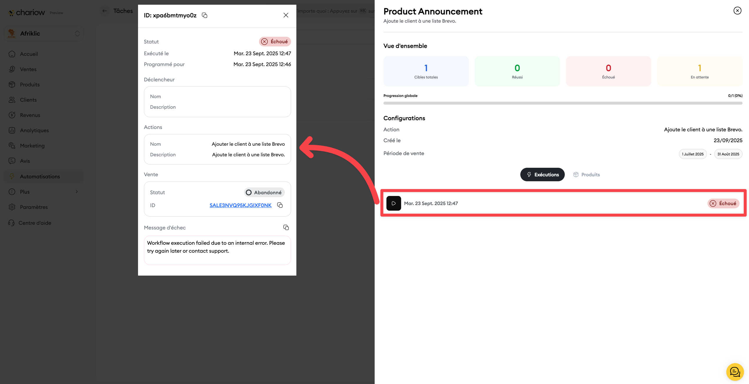 Historique des exécutions : Cette section vous donne un historique détaillé de chaque exécution, y compris l'heure et le statut. C'est l'endroit idéal pour diagnostiquer d'éventuels problèmes.