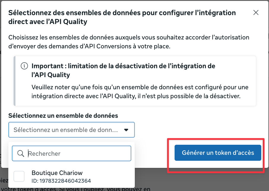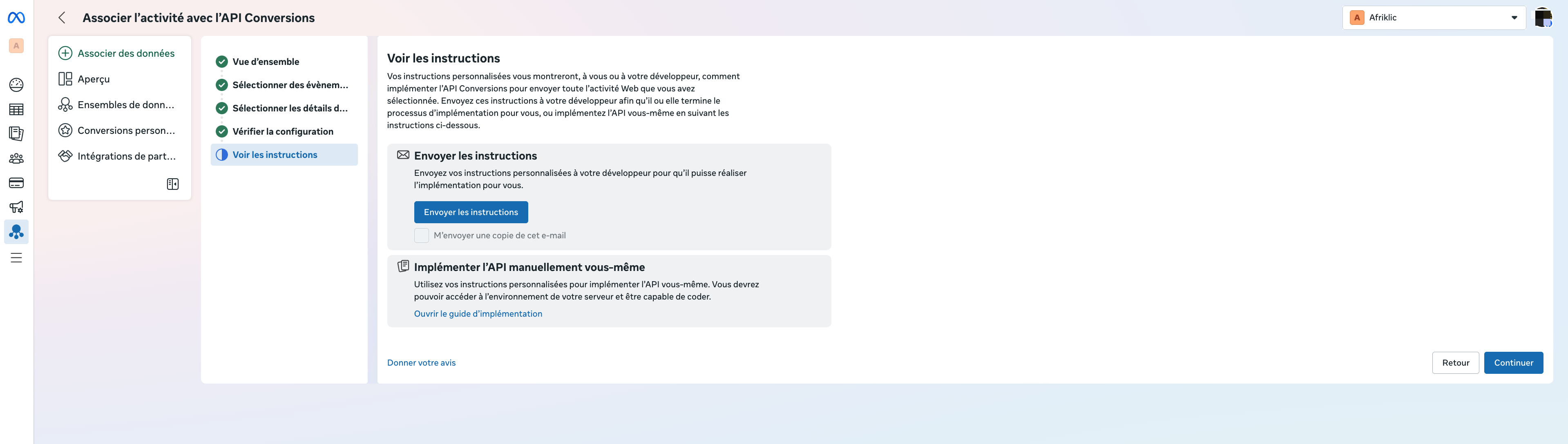 Une fois que vous avez l'identifiant de votre Pixel et votre Jeton d'accès, vous pouvez finaliser la connexion serveur-à-serveur :