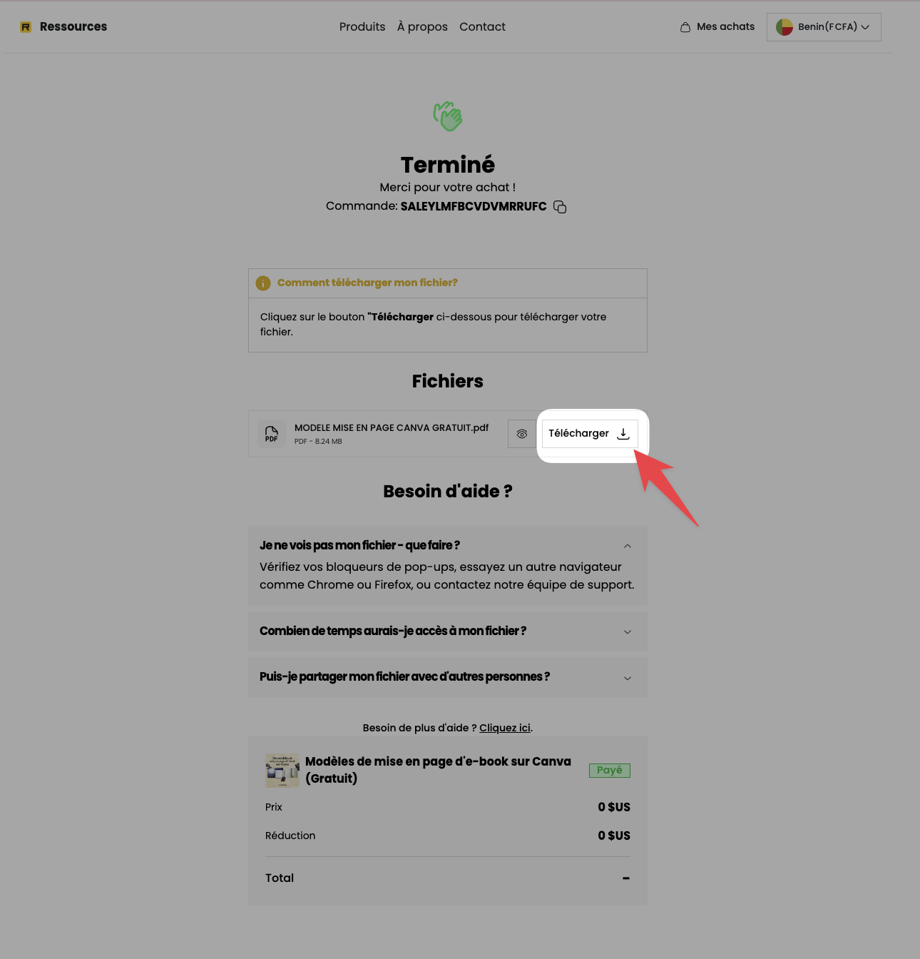 NB: Vous pourrez toujours télécharger votre fichier à n’importe quel moment à partir de votre espace client Chariow.