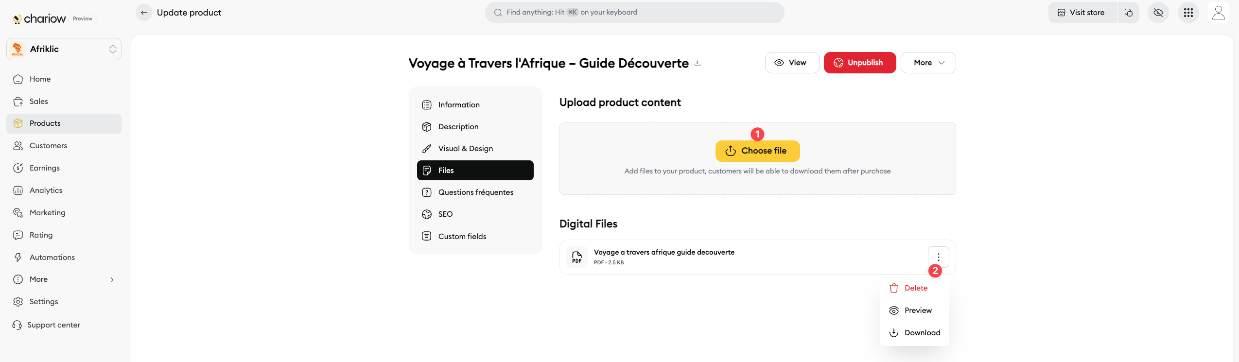 Once you've created your product, the next step is to customize it to make it appealing and informative for your customers. How you personalize it depends on the type of product (digital file, course, or service).