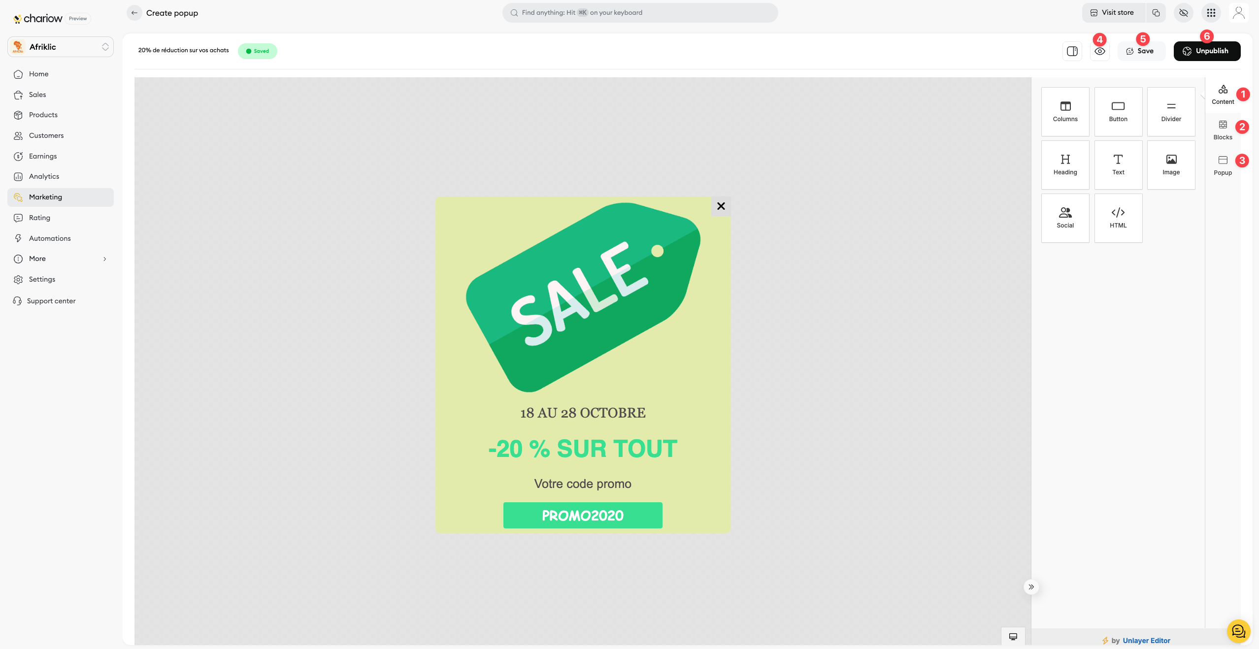 Activate Your Popup (6): When you're ready to make it visible on your store, click the "Publish" button. Your popup is now active and ready to interact with your visitors.