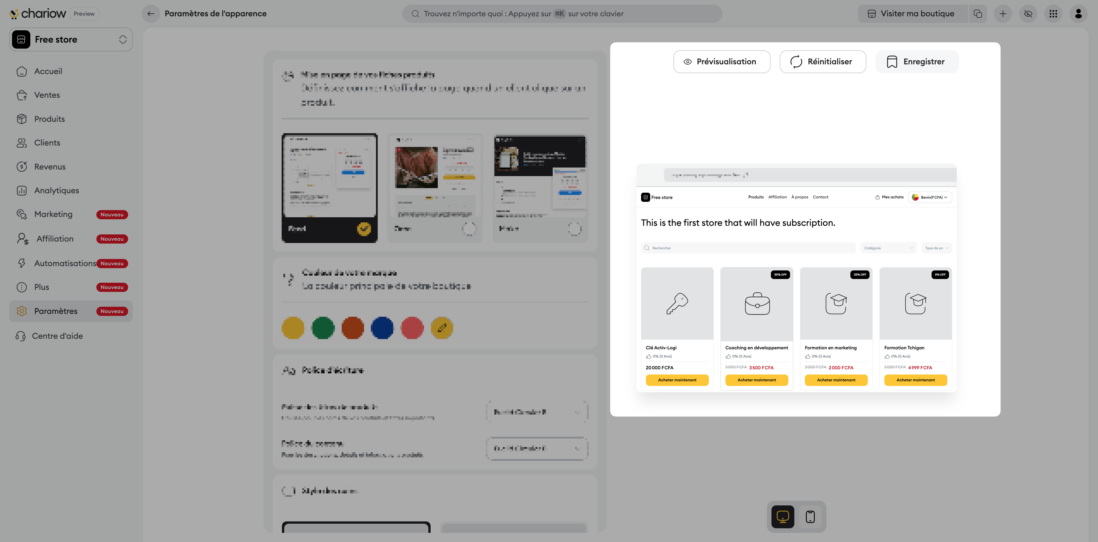 Apparence de votre boutique : Choisissez le modèle qui convient le mieux à votre marque.