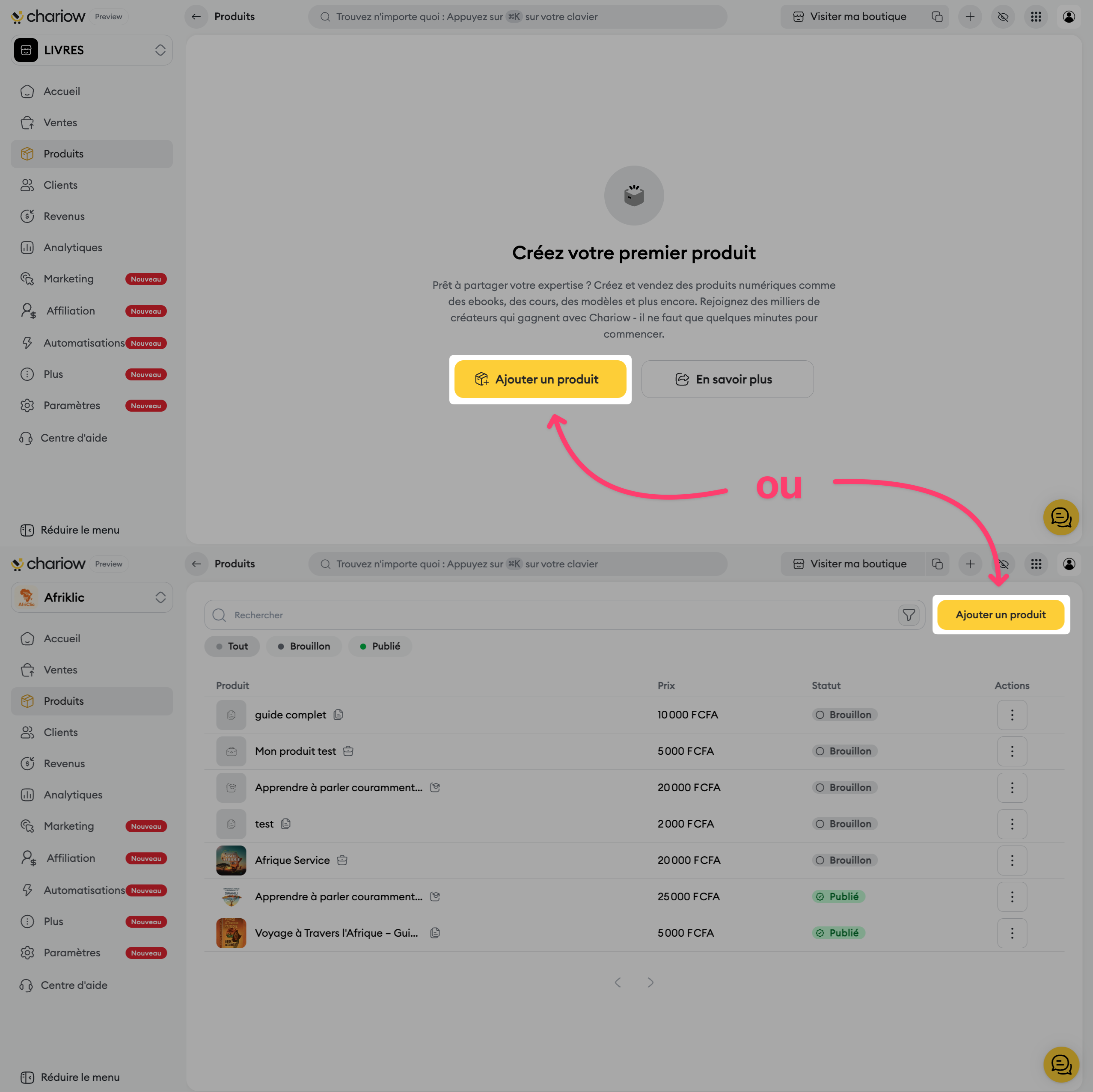 Cliquez sur le bouton pour créer un nouveau produit.