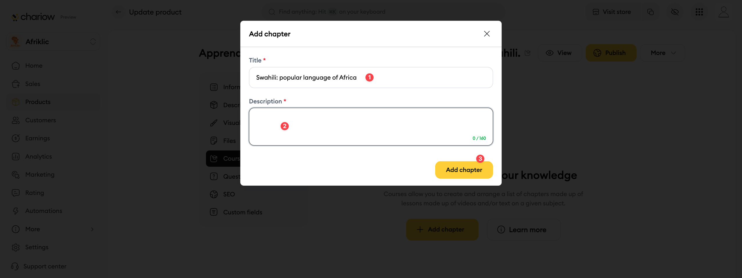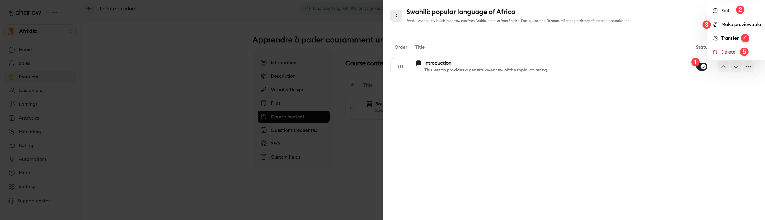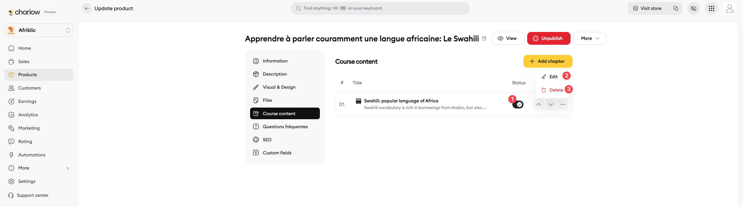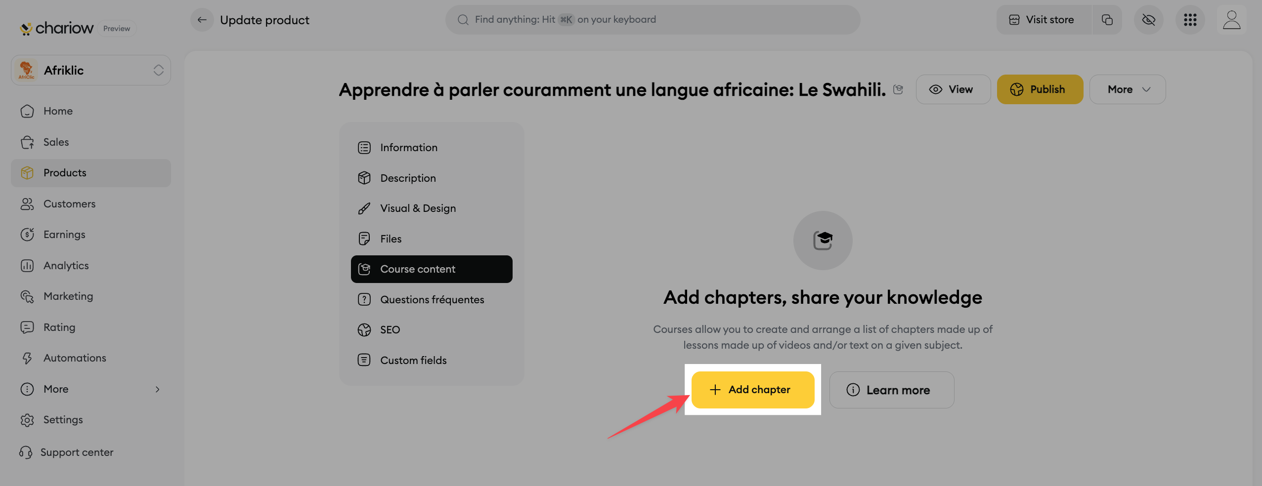 Content is at the heart of your training. To give a full learning experience, Chariow lets you organize and enrich your course with chapters and lessons. Here’s how to structure your content effectively.