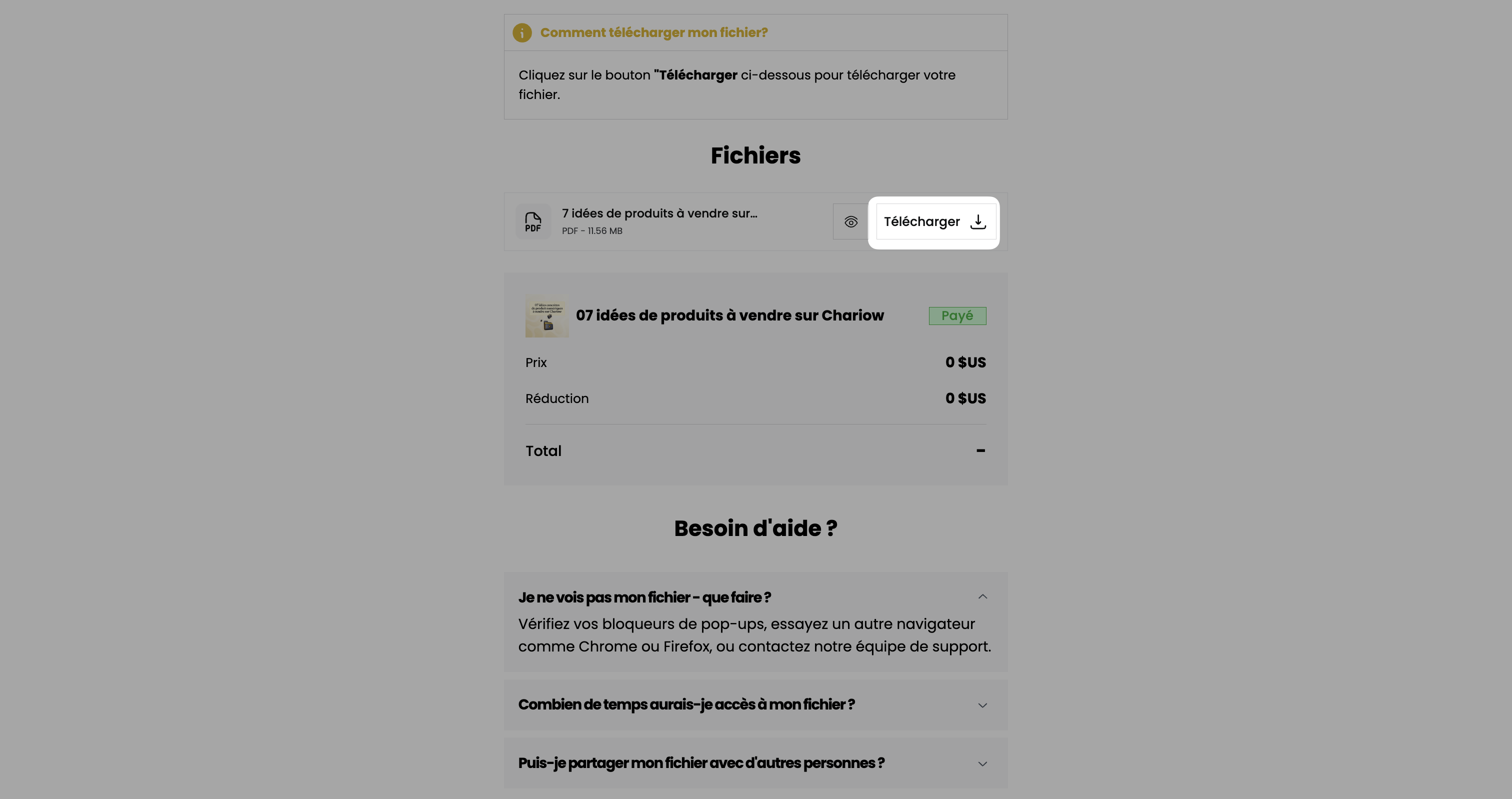 NB : Vous pourrez toujours télécharger votre fichier à n'importe quel moment à partir de votre espace client Chariow.
