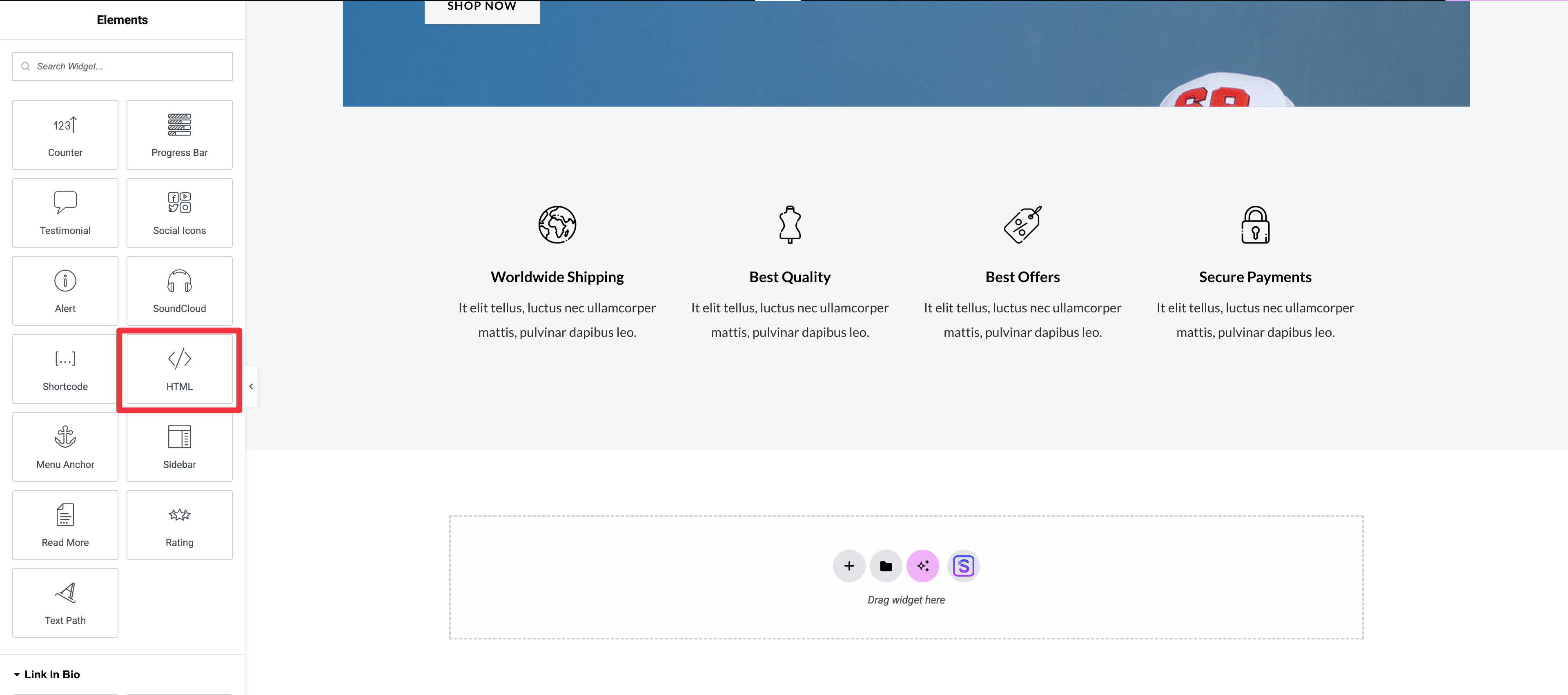 La plupart des constructeurs de pages incluent un élément dédié pour le code ou le HTML.