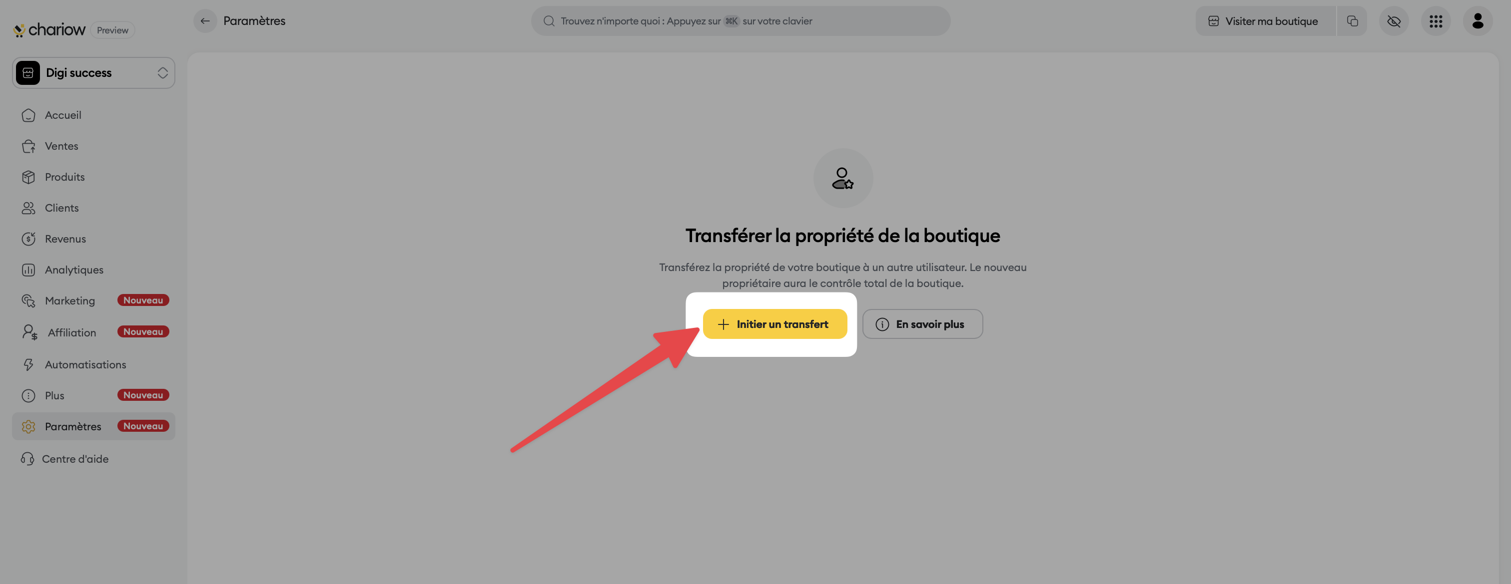 Connectez-vous à votre interface Chariow.