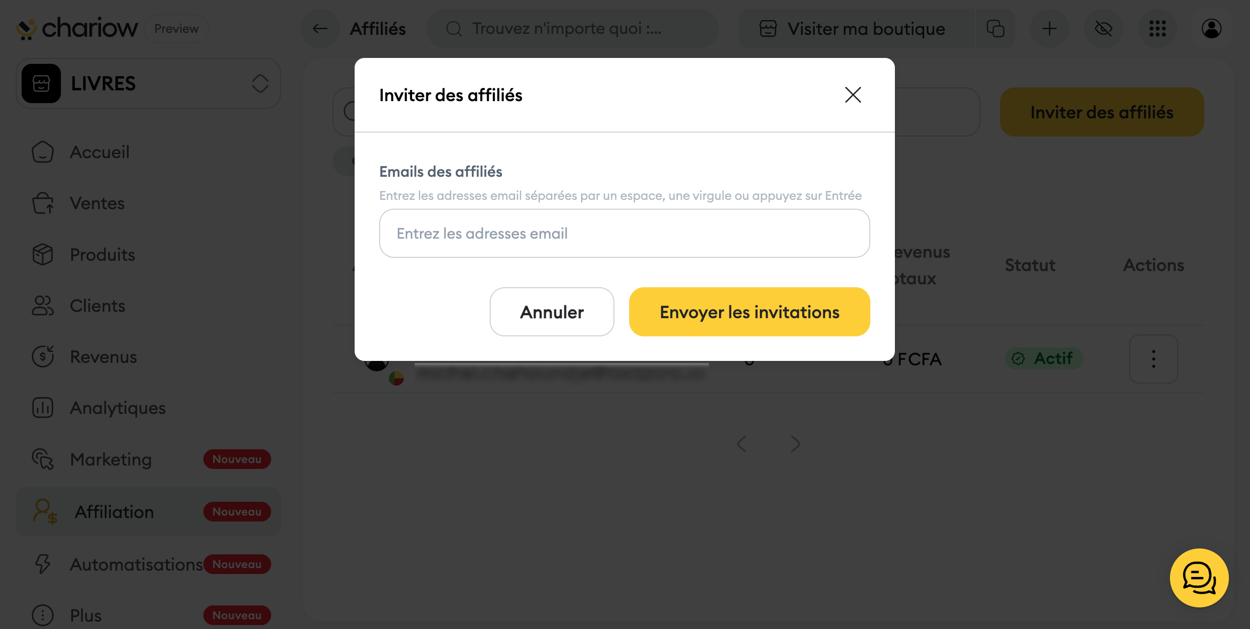 Cliquez sur le bouton "Inviter des affiliés".