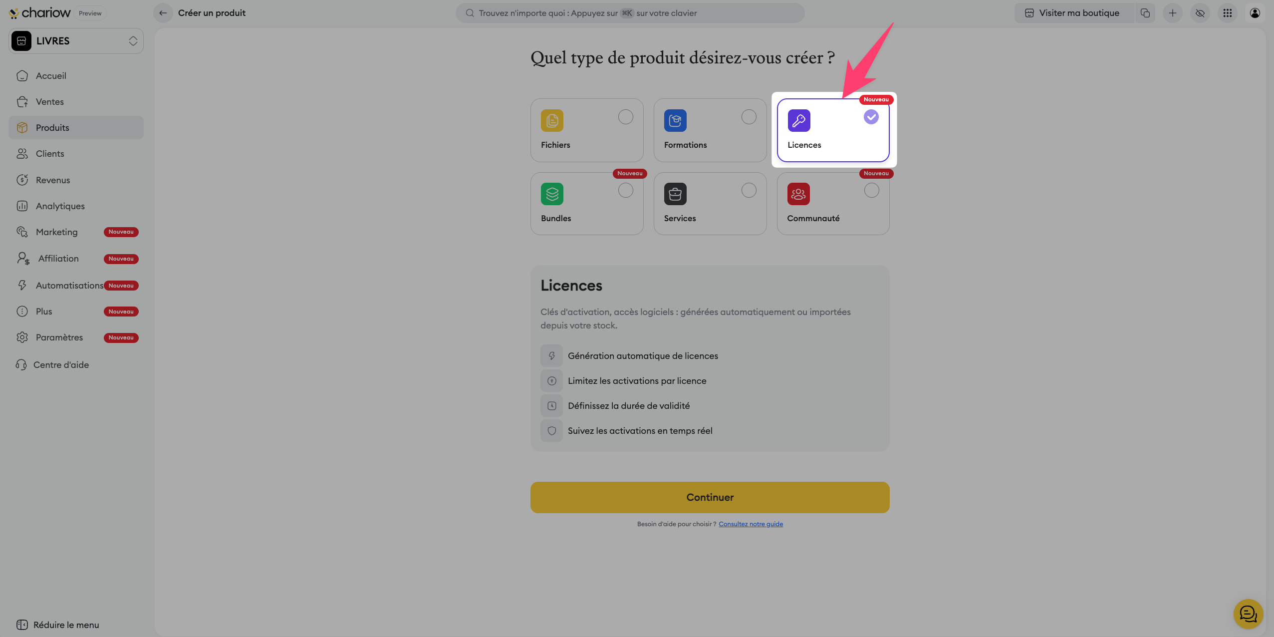➜ Configuration et personnalisation des licences sur Chariow