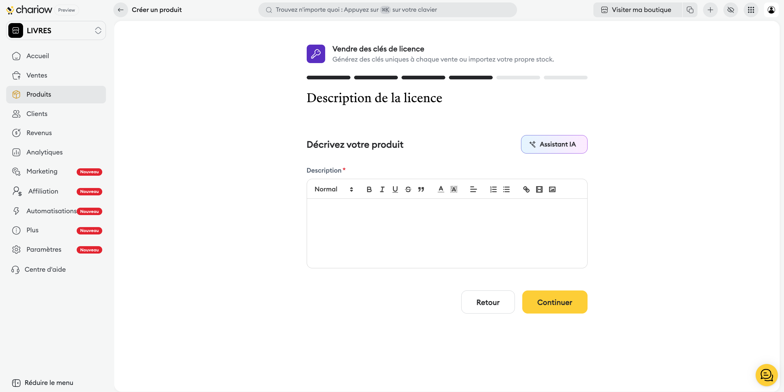 Assistant IA : Utilisez l'intelligence artificielle pour optimiser votre texte de vente.