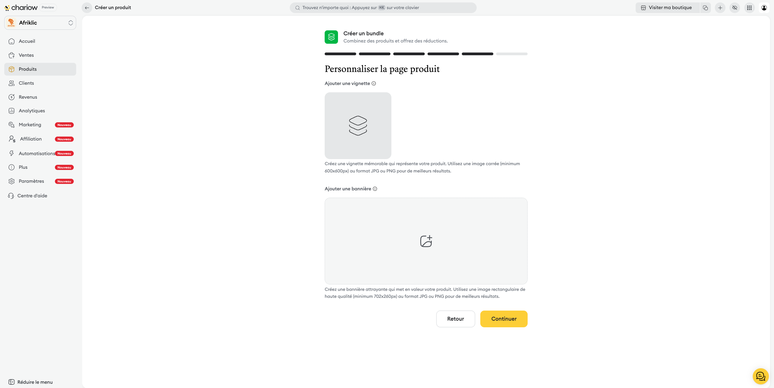 Bannière : téléchargez une image rectangulaire de haute qualité (minimum 702x260px) pour habiller le haut de votre page de vente.