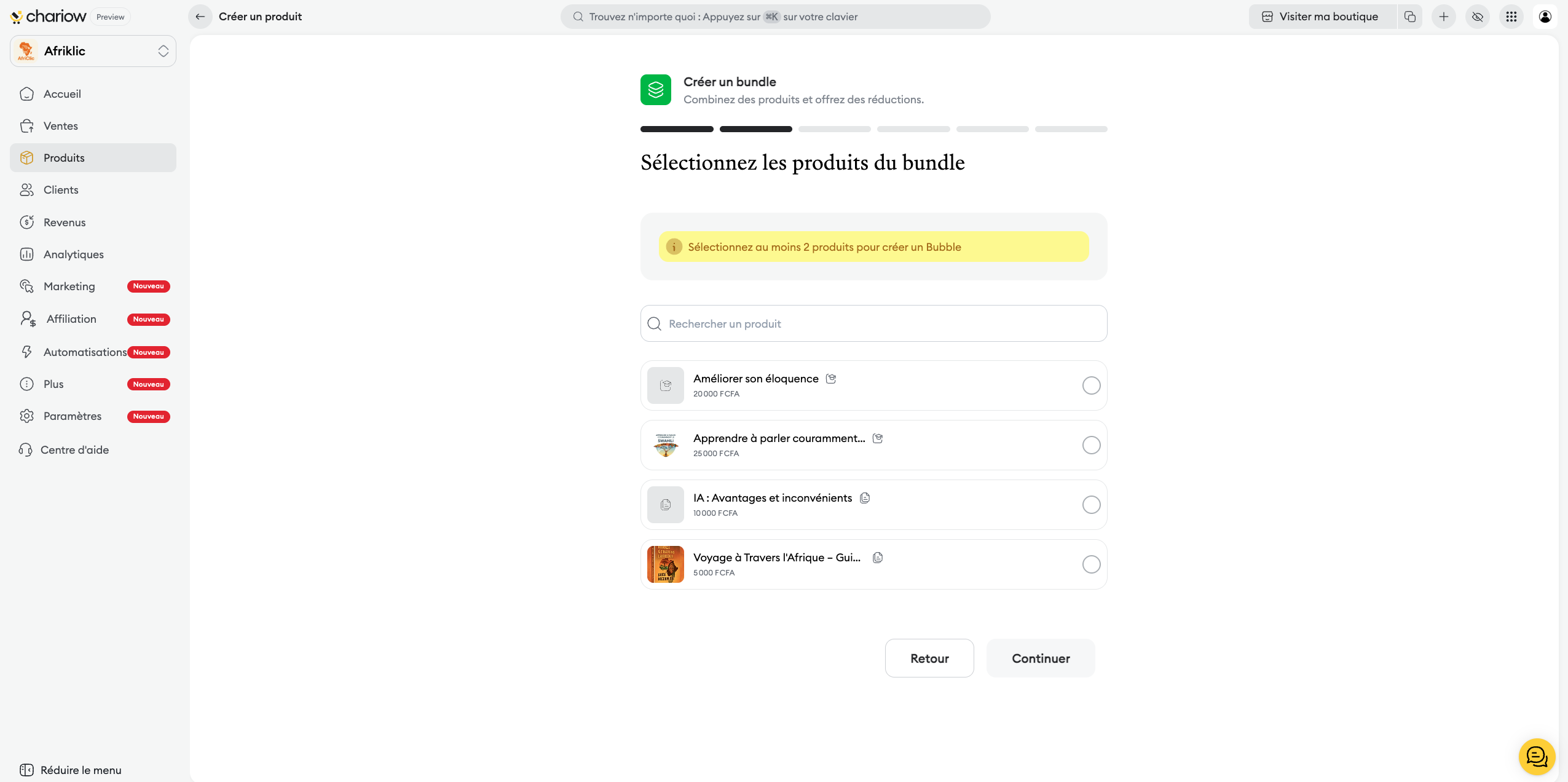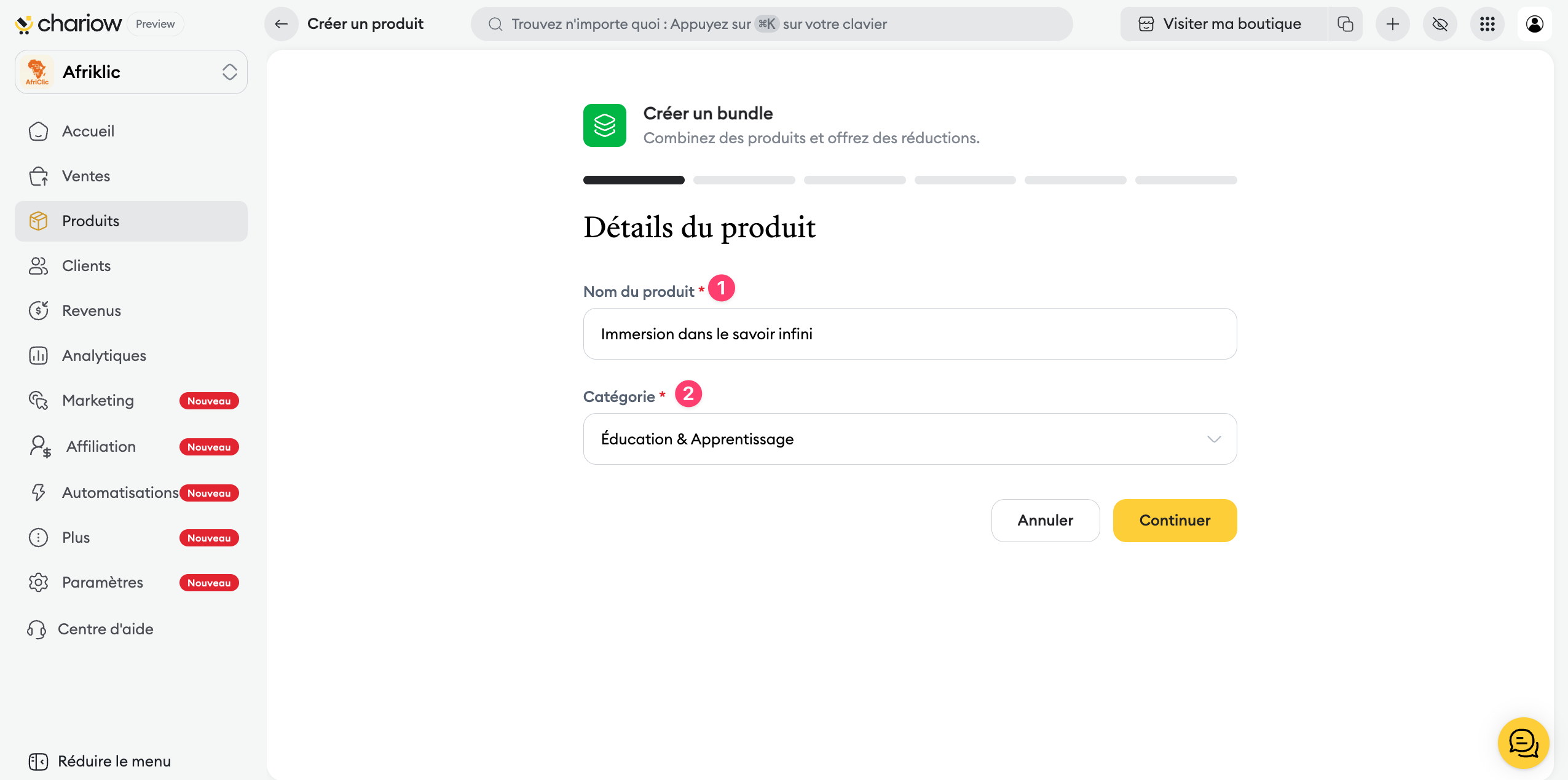 Combinez plusieurs produits : regroupez des formations, des fichiers ou des licences en une offre unique.