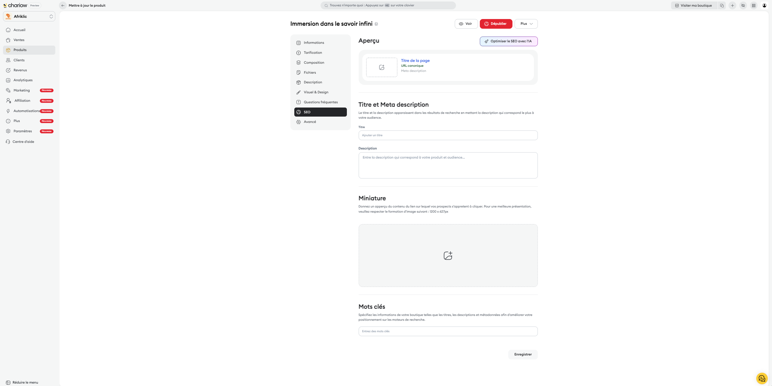 SEO : Personnalisez la miniature et la description pour les moteurs de recherche.