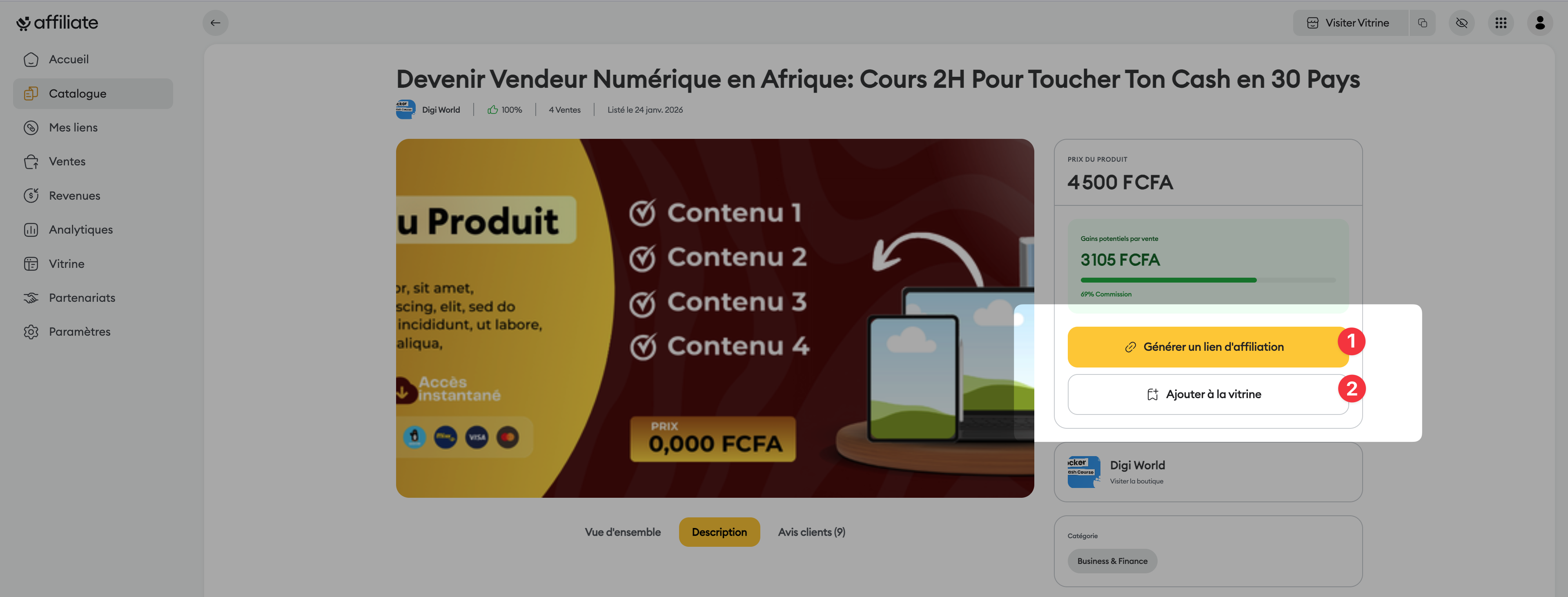 Le "Catalogue" est le point de départ indispensable pour tout affilié souhaitant monétiser son audience. C'est ici que vous sélectionnez les produits que vous souhaitez promouvoir pour générer des commissions.