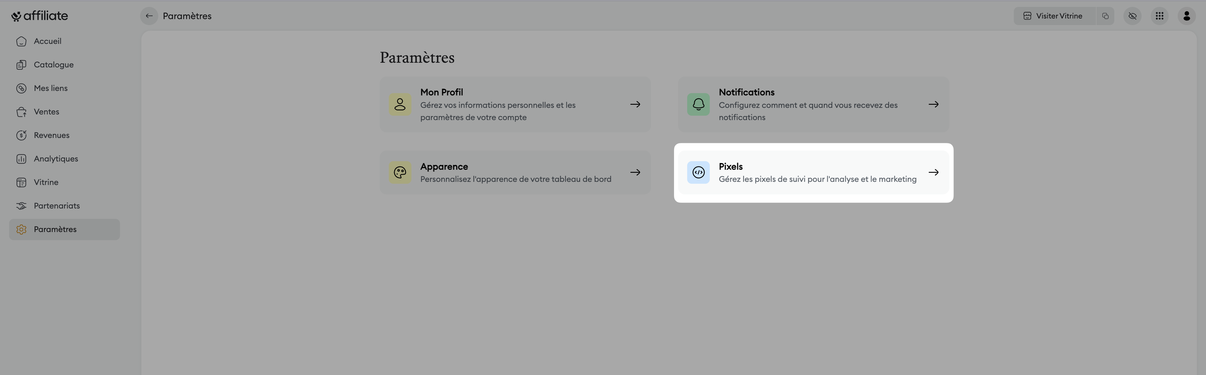 Sélectionnez le Pixel que vous souhaitez connecter à votre vitrine.