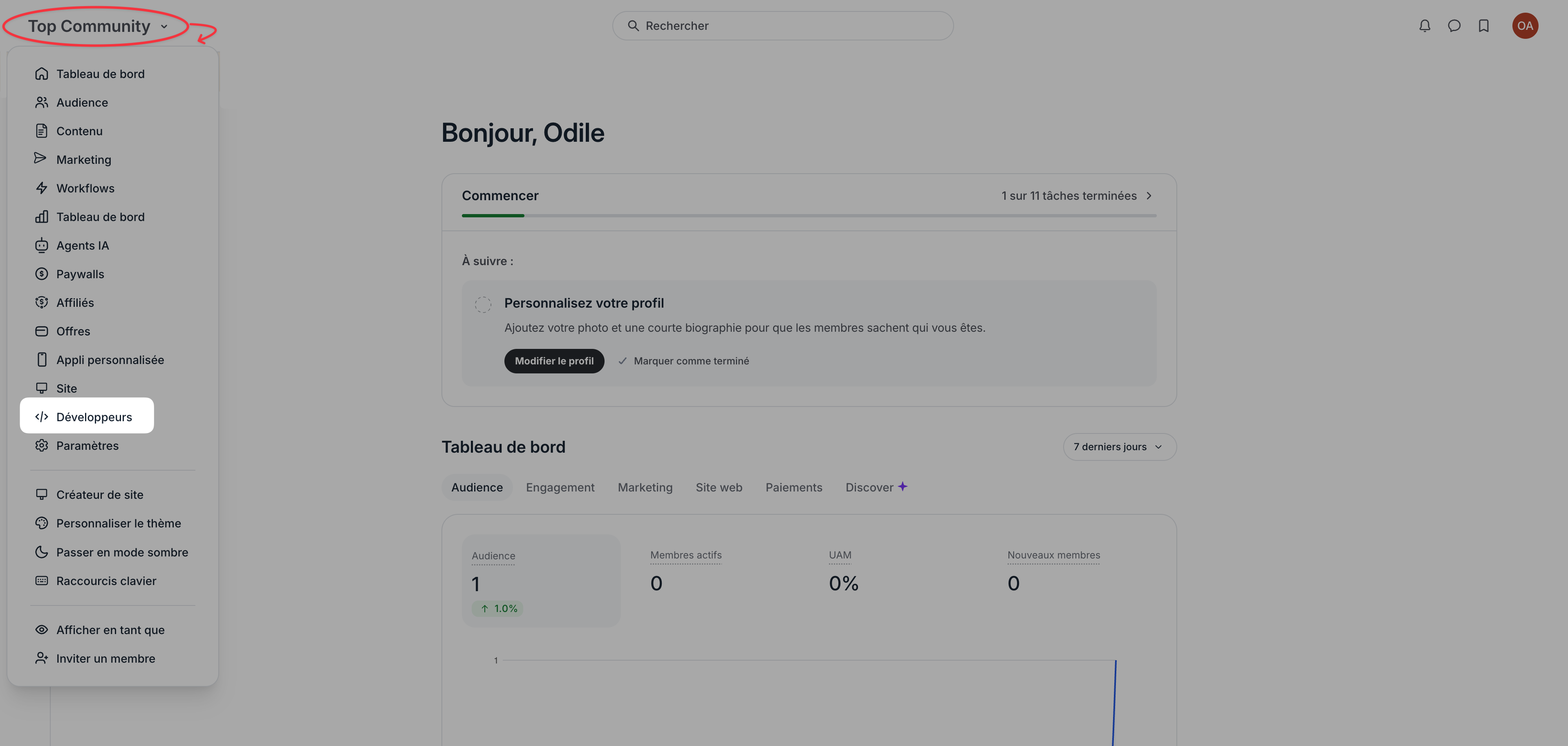 Cliquez sur le nom de votre communauté (en haut à gauche).