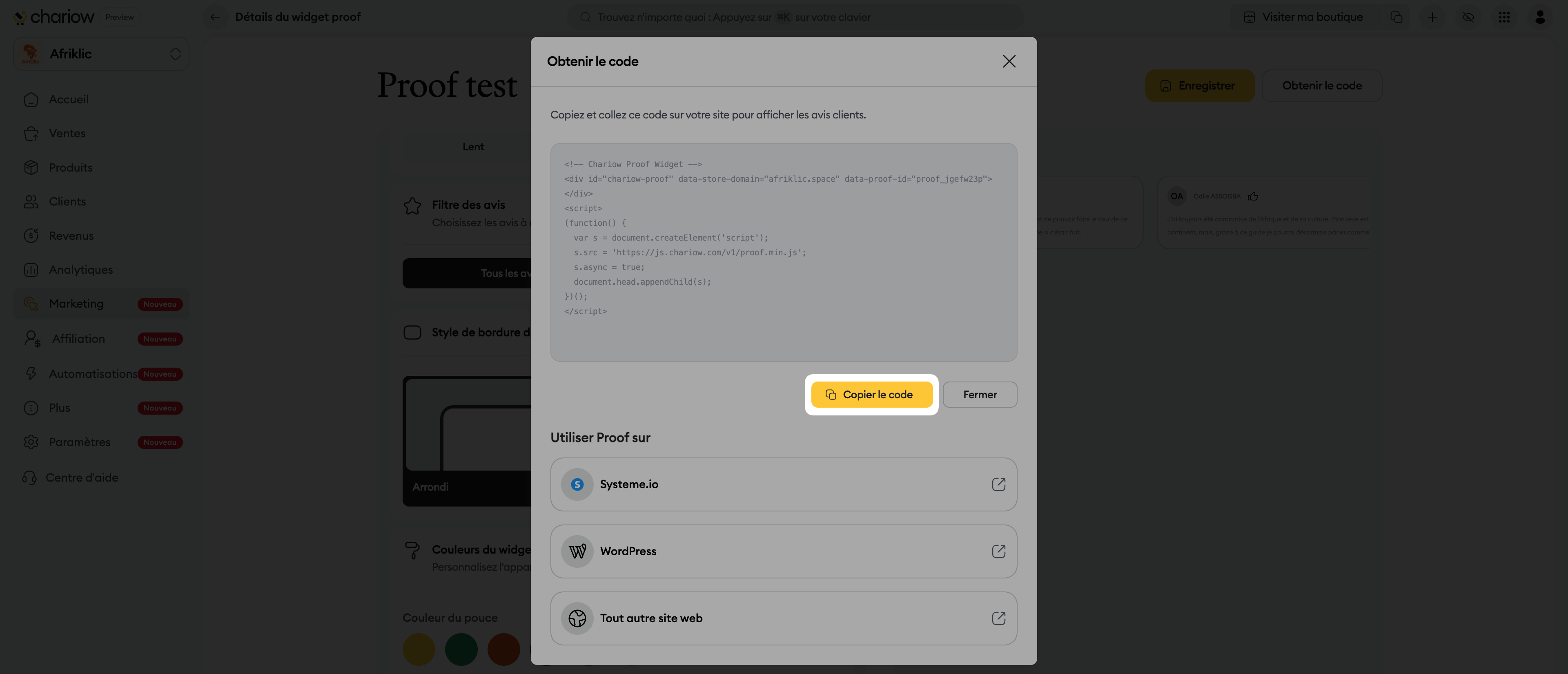 Copiez le code et collez-le sur votre page de vente (Makeup) ou votre site web externe.