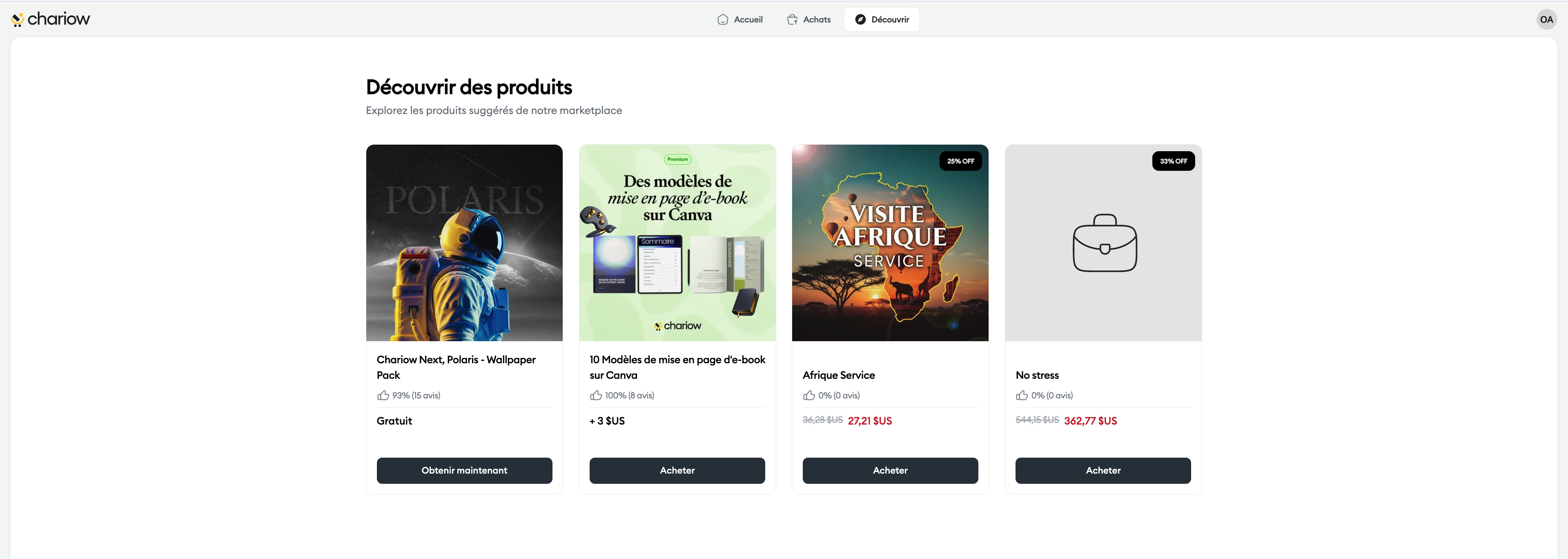 L'onglet "Découvrir" est un espace personnalisé. Il vous propose une sélection de produits disponibles sur les boutiques des créateurs chez qui vous avez déjà effectué un achat.
