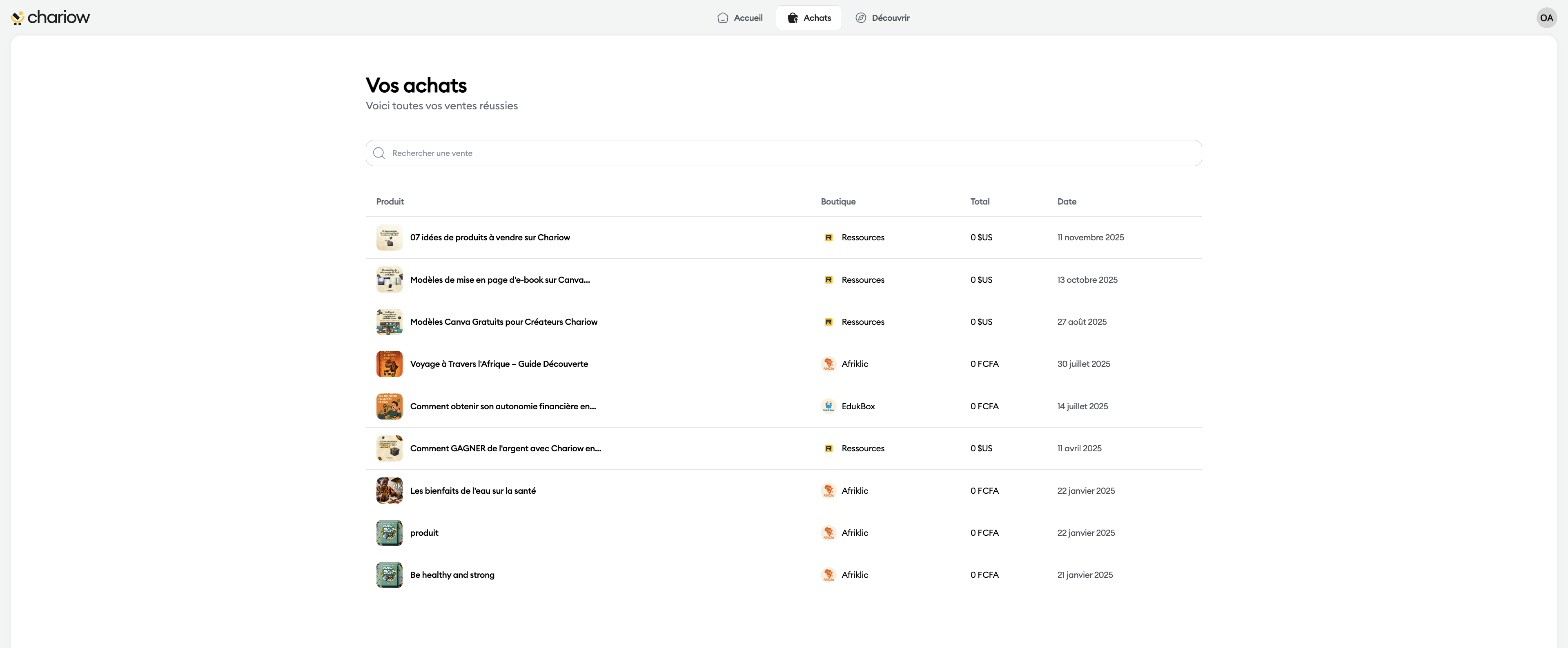 Si vous avez besoin de consulter l'historique complet de vos transactions ou de retrouver la date d'une commande :