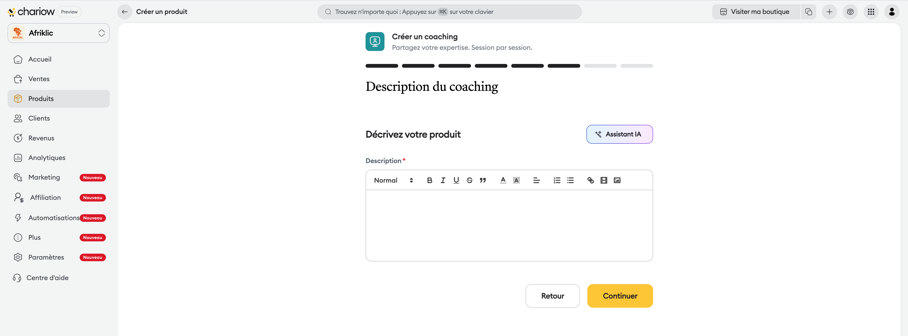 Assistant IA : Vous pouvez solliciter l'aide de l'intelligence artificielle pour générer un texte de vente efficace.
