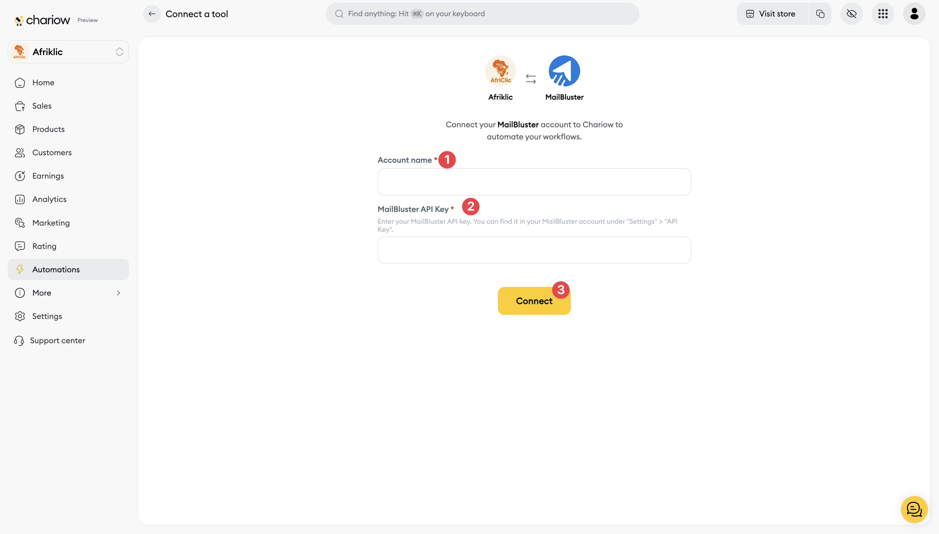 Now that you have your MailBluster API key, let's connect MailBluster to Chariow.